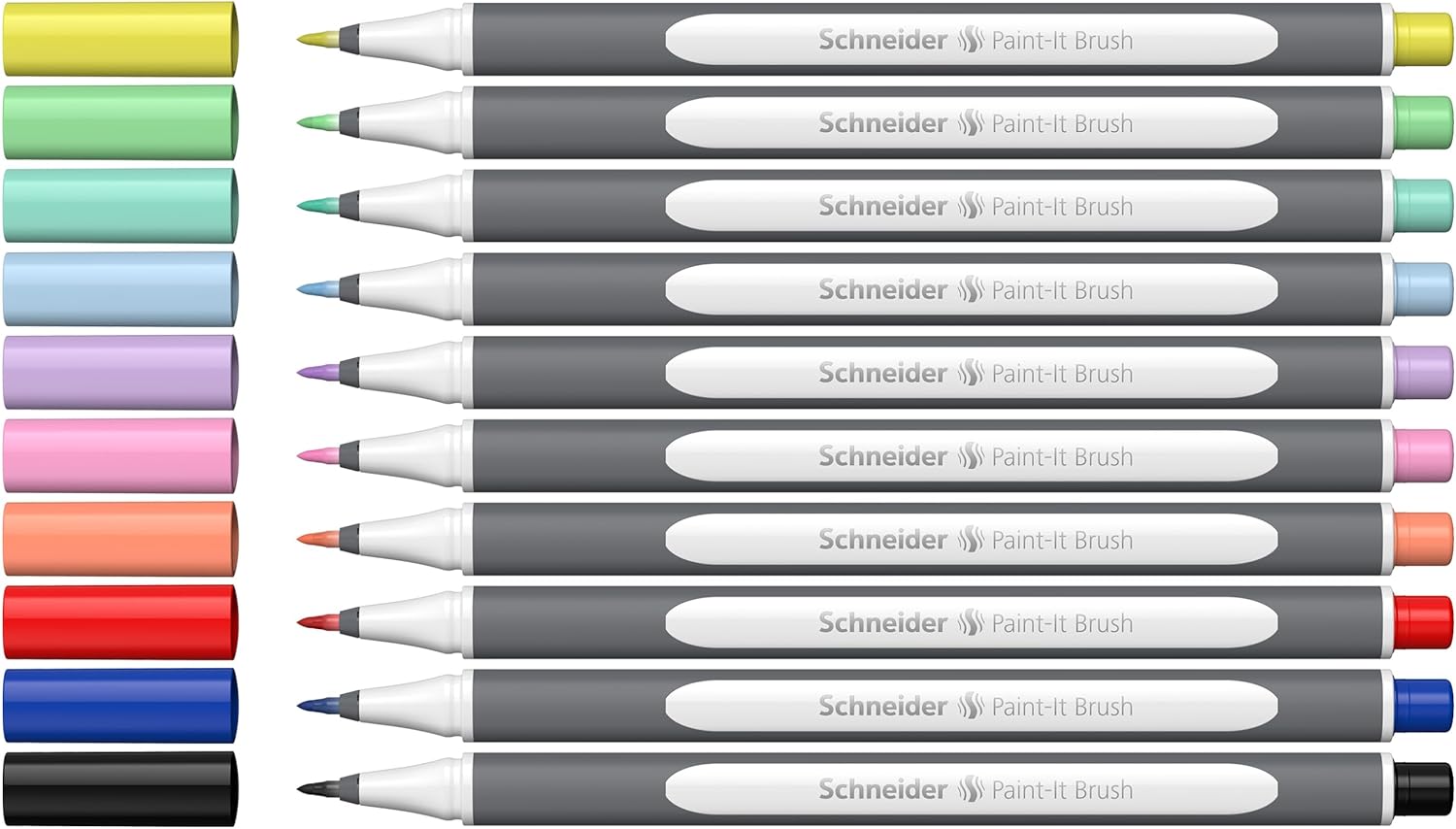 Schneider Brushpen Paint-It 070 (pisaki pędzelkowe klasy premium z elastyczną końcówką i jaskrawymi kolorami do kaligrafii, ręcznego literowania i wielu innych), 10 sztuk posortowanych