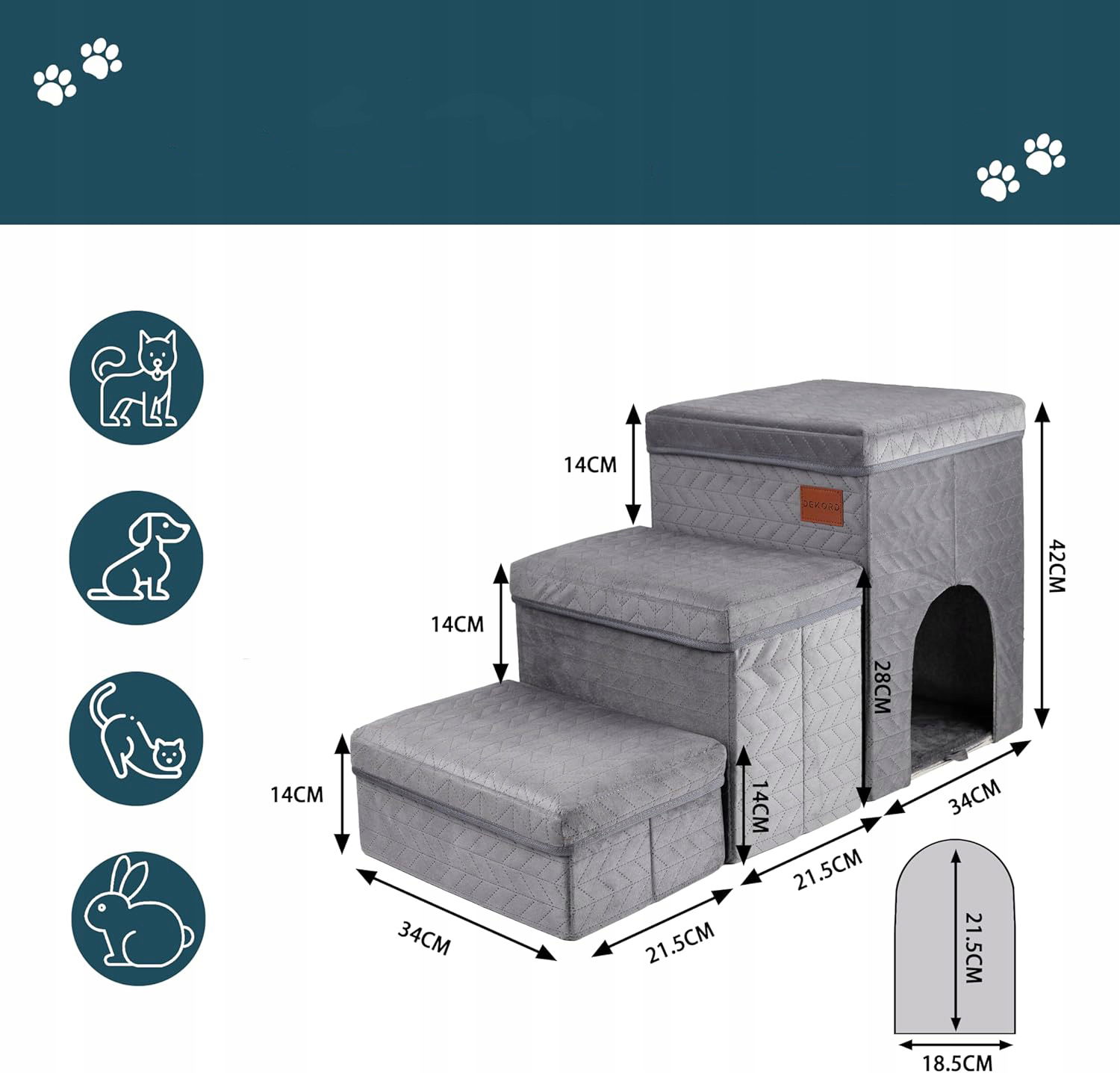 ⭐ SCHODKI DLA PSA DO WCHODZENIA PODEST 3 STOPNIE 40 CM ZE SCHOWKIEM SZARE