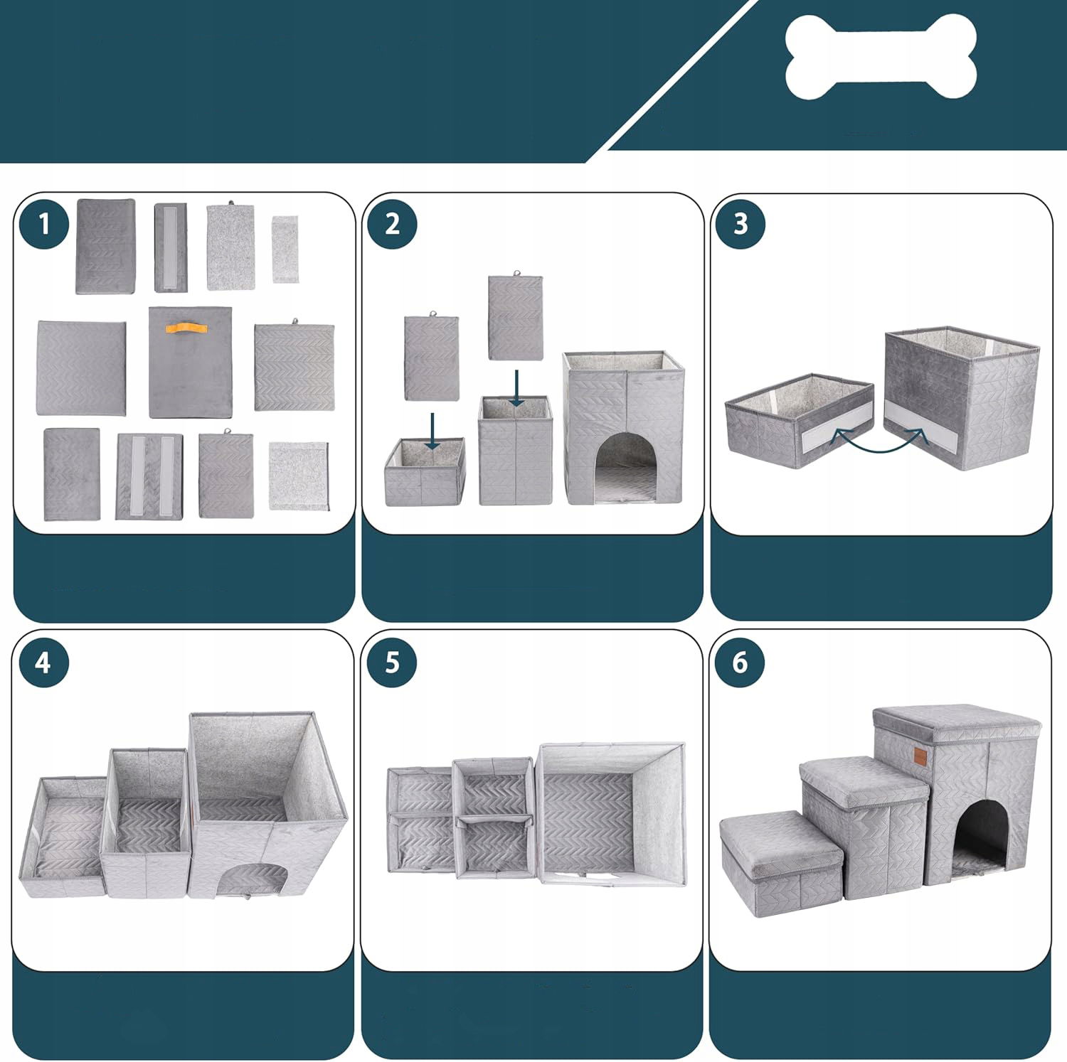 Konstrukcja została zaprojektowana tak, aby montaż był szybki i intuicyjny. Schodki można złożyć w kilka minut, a lekkość całej konstrukcji ułatwia ich przenoszenie między pomieszczeniami. Idealnie sprawdzą się zarówno w sypialni, salonie, jak i przy łóżku właściciela — tam, gdzie pupil ich potrzebuje.