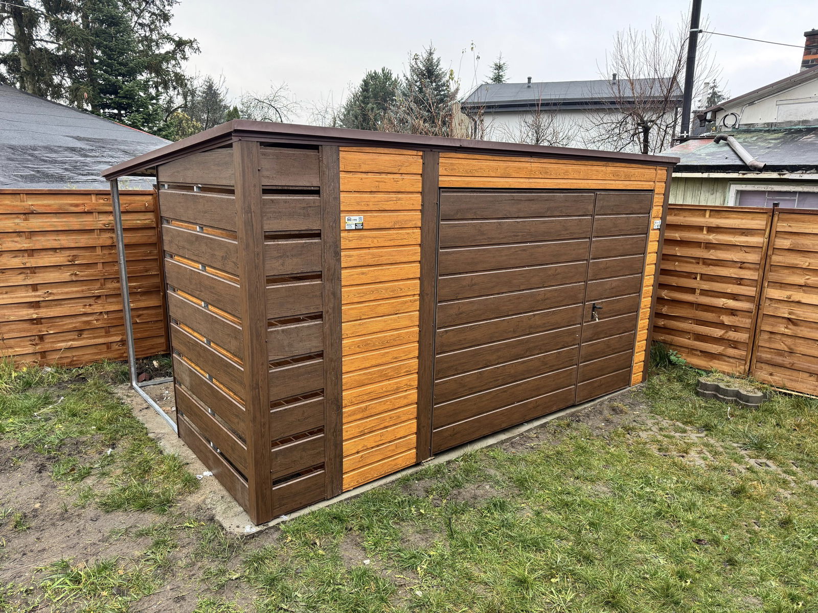 Schowek domek ogrodowy Garaż 4x3m wiata 0,5m Brama uchylna drzwi ID873