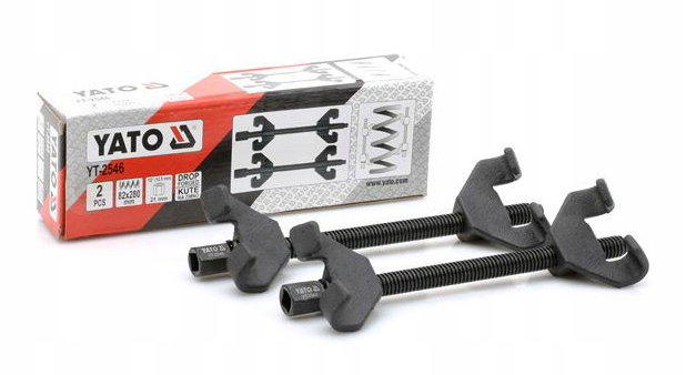 Profesjonalne ściągacze do sprężyn o długości 270 mm przeznaczone do bezpiecznego i wygodnego montażu i demontażu sprężyn m.in. w kolumnach MacPhersona. Niezbędne w każdym warsztacie samochodowym. Praca jest bezpieczna, dzięki specjalnie wyprofilowanym, dwuramiennym uchwytom.