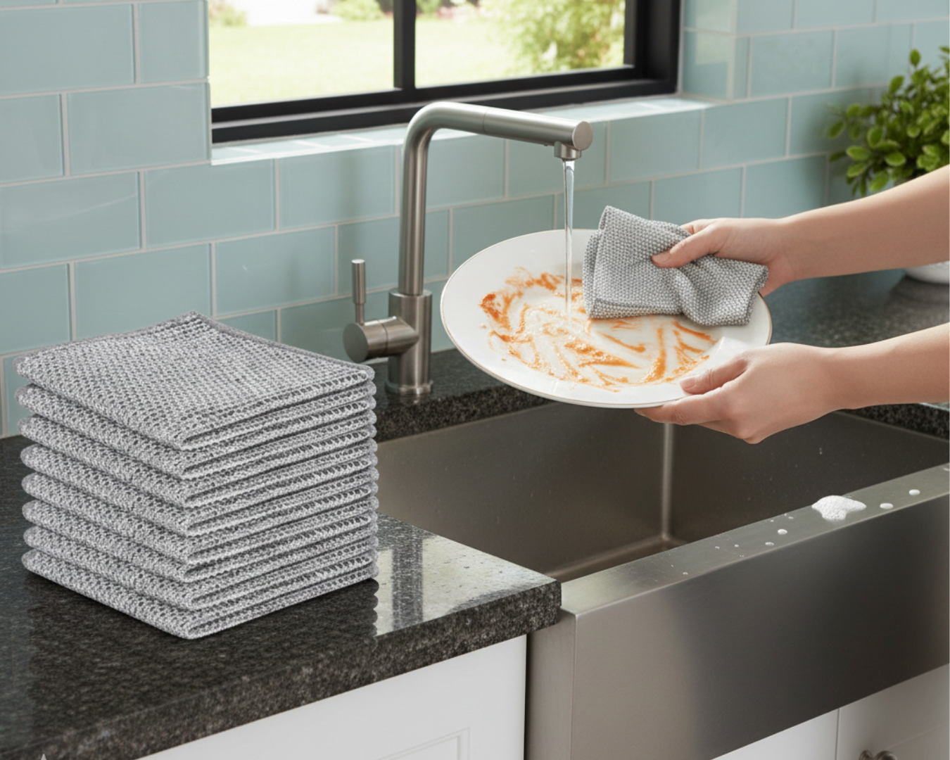 - Higiena na najwyższym poziomie: Ściereczki nie chłoną zapachów tak szybko jak gąbki. Po pracy wystarczy je przepłukać lub wyprać w pralce, by znów były jak nowe!