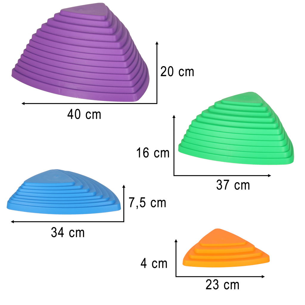 - Najmniejsze kamienie (4 szt): 23 × 23 × 4 cm