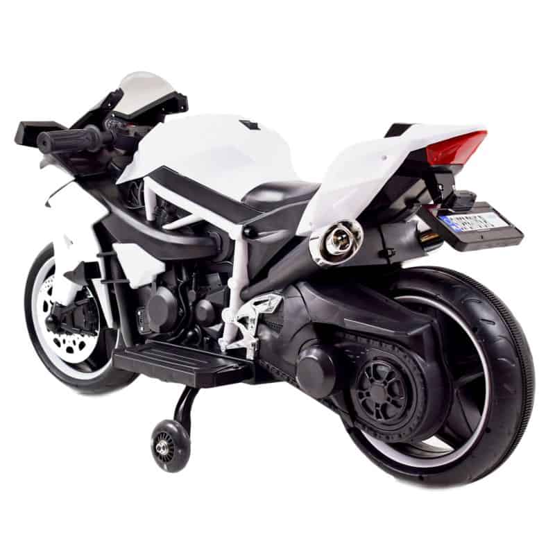 Panel z dźwiękami ( dźwięki odpalania motocykla) z wejściem USB i AUX i oświetlenie pojazdu ( światła oraz świecące koła) umili o urozmaici zabawą.