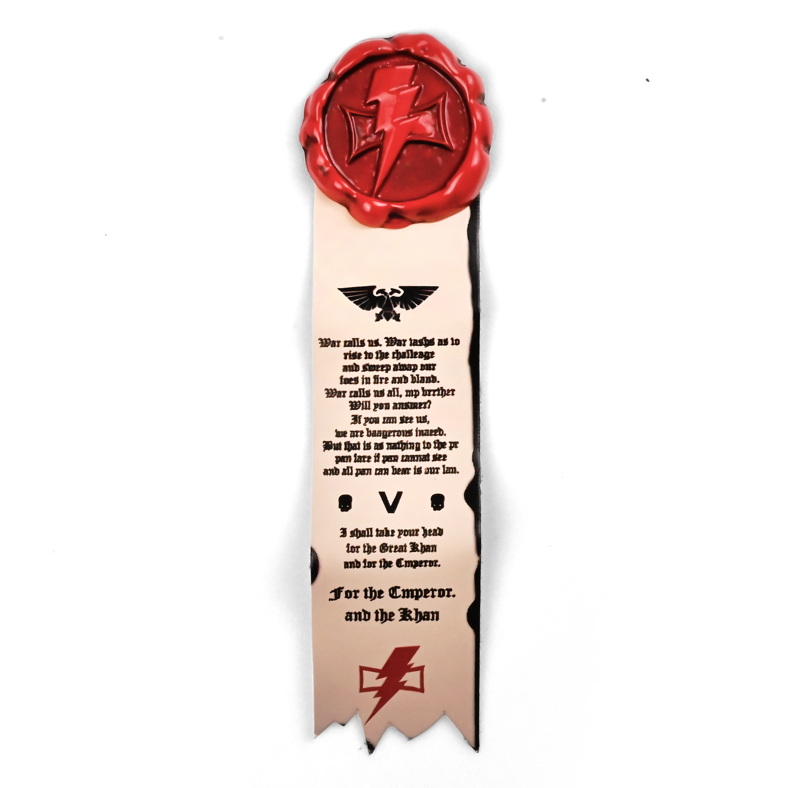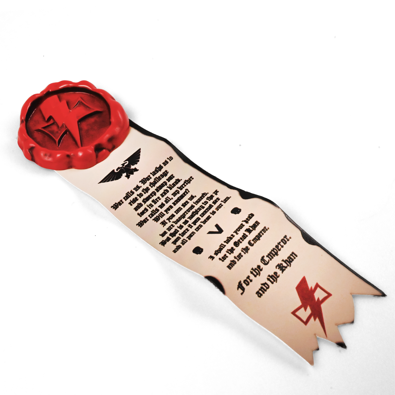 W ponurej przyszłości, w której panuje tylko wojna, jedynie najczystsi wojownicy Imperium zasługują na zaszczyt noszenia Pieczęci Czystości. Ta kolekcjonerska Pieczęć Czystości White Scars to idealny wybór dla każdego fana Warhammer 40k i wyjątkowy element merchandise Warhammer 40k, który możesz nosić z dumą lub eksponować w swojej kolekcji. Wykonana z trwałej metalowej żywicy, przypinka ta została zaprojektowana, aby przetrwać próbę czasu jako prawdziwy symbol honoru. Jej 8 cm długości przyciąga wzrok dzięki szczegółowemu wykonaniu i wyrazistemu designowi. Głęboka, karminowa pieczęć przypomina woskową odznakę z symbolem błyskawicy White Scars – znakiem szybkości, dzikości i woli Imperatora. Poniżej zwisa pergaminowa wstęga pokryta gotyckim pismem i ikonografią Imperium, nadając jej wygląd autentycznego artefaktu nadawanego Astartes za czyny odwagi. Solidne zapięcia pozwalają bezpiecznie przypiąć ją do ubrania, torby lub tablicy kolekcjonerskiej. To coś więcej niż ozdoba – to uosobienie ducha White Scars: nieustannego pościgu i chwalebnych zwycięstw. Przypomina o obowiązku, poświęceniu i wiecznym okrzyku: „Za Imperatora i Chana!” Dodaj tę Pieczęć Czystości do swojej kolekcji i noś przy sobie część niezłomnej wiary Imperium.