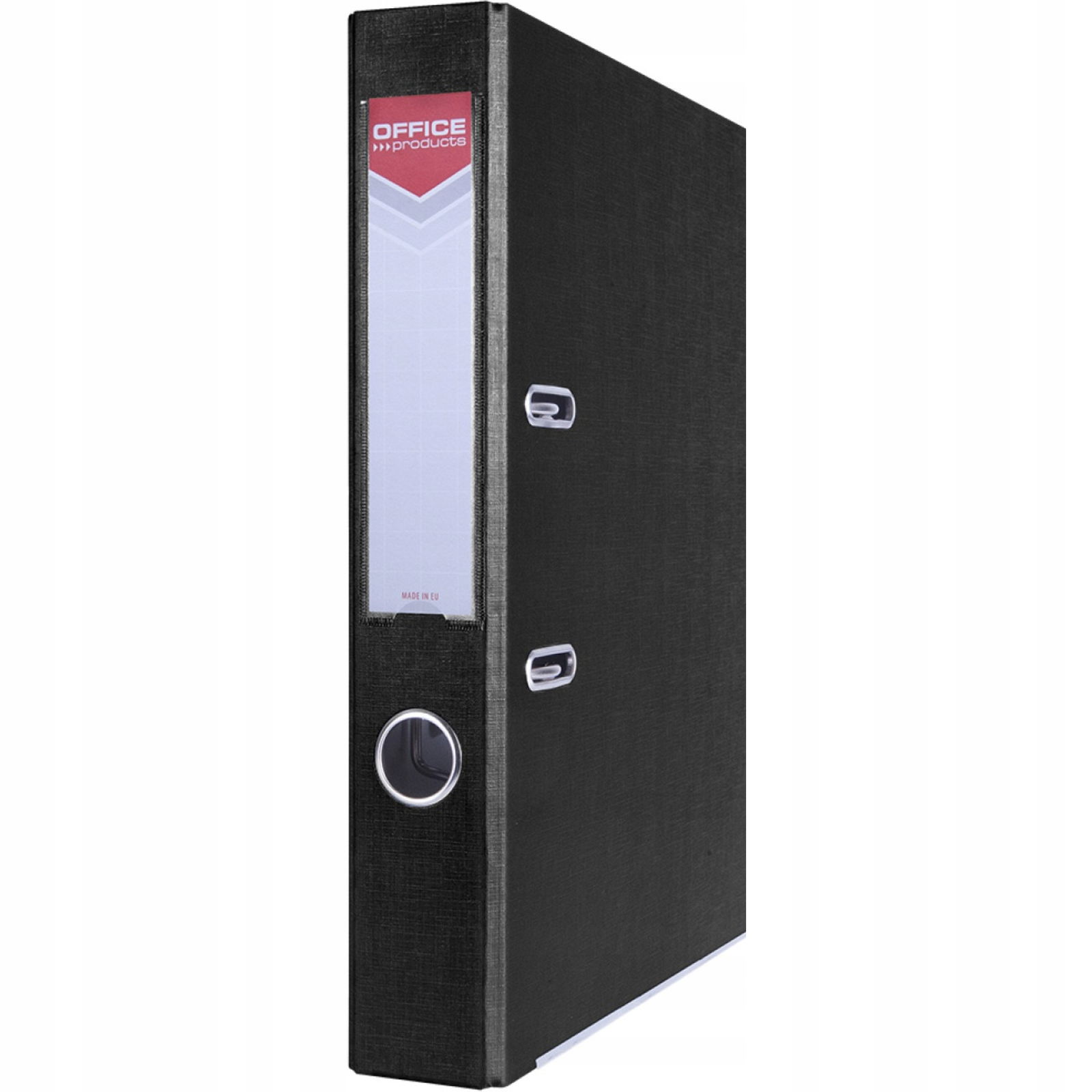 Segregator biurowy, okuty, wykonany z wysokiej jakości kartonu o grubości 1,9mm i gramaturze 1170 gsm ze wzmocnioną dolną krawędzią. Produkt pokryty został matową folią polipropylenową o gramaturze 100 mikronów. Wewnątrz sklejka papierowa, odporna na zabrudzenia. Okienko inspekcyjne z etykietą na grzbiecie segregatora pozwala na dowolne opisanie segregatora. Nad całością czuwa najwyższej jakości mechanizm dźwigniowy.