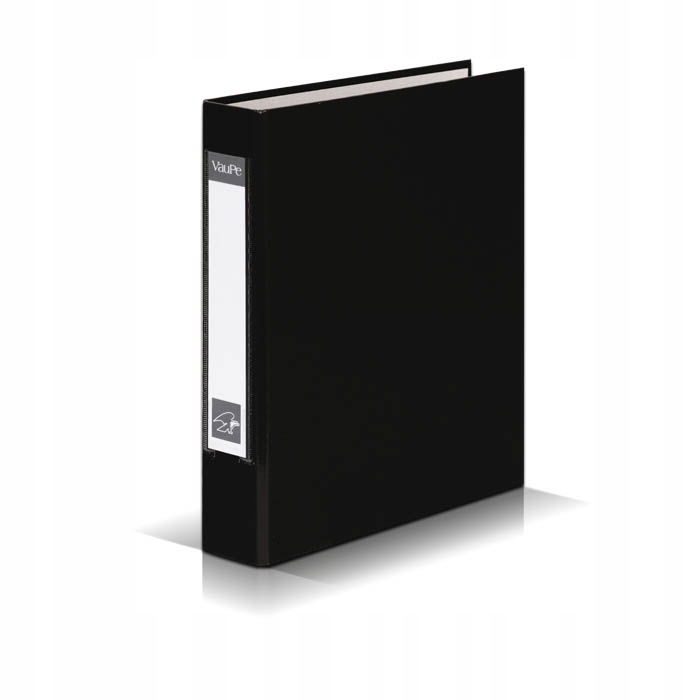 Czarny segregator VauPe FCK. Wyposażony w mechanizm ringowy, cechujący się kompaktową konstrukcją. Świetnie sprawdzi się jako miejsce tymczasowego przechowywania Twoich dokumentów, albo jako element większego archiwum.