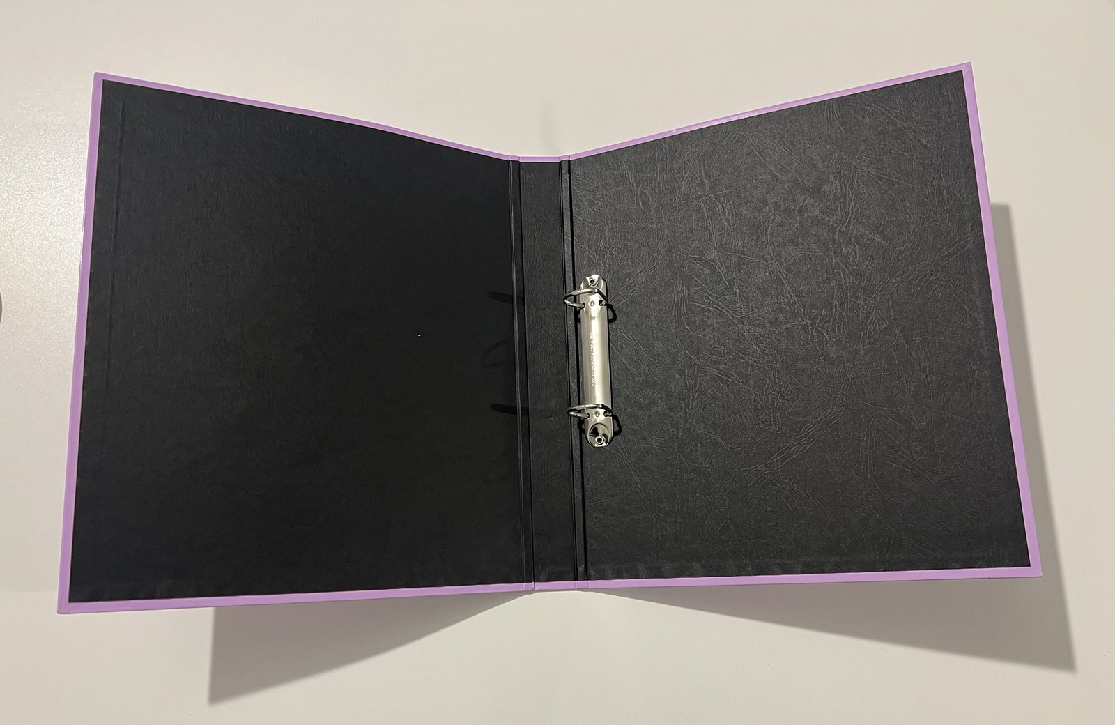 Cechy: mechanizm pierścieniowy 2-D z plastikowym uchwytem, zewnętrzna strona wykonana z błyszczącego laminowanego kartonu, wewnętrzne lusterko z czarnego papieru, solidny rdzeń z kartonu