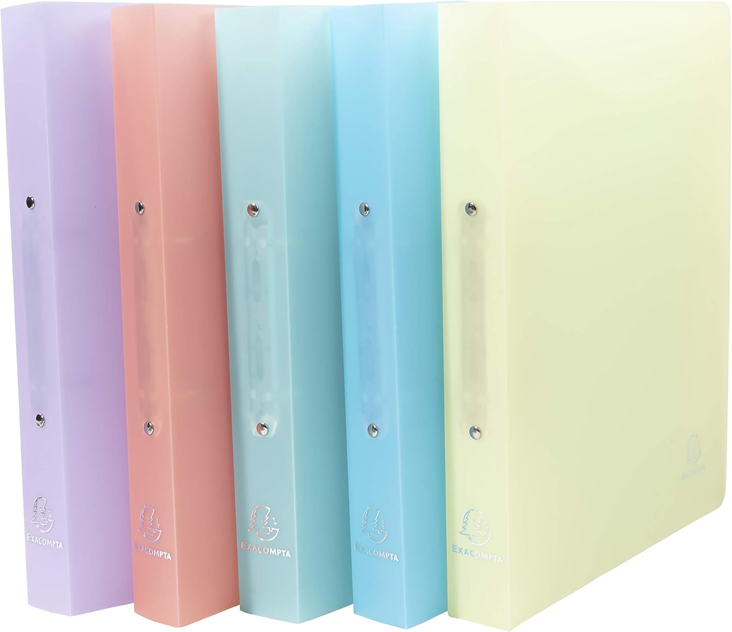 Exacompta 54970E 4 sztuki, segregator z tworzywa sztucznego Premium z pierścieniami Chromaline, polipropylen o średniej wytrzymałości, półprzezroczysty, 2 pierścienie, wysokość wypełnienia 30 mm, teczka plastikowa DIN A4, idealna do biura i szkoły, różne kolory