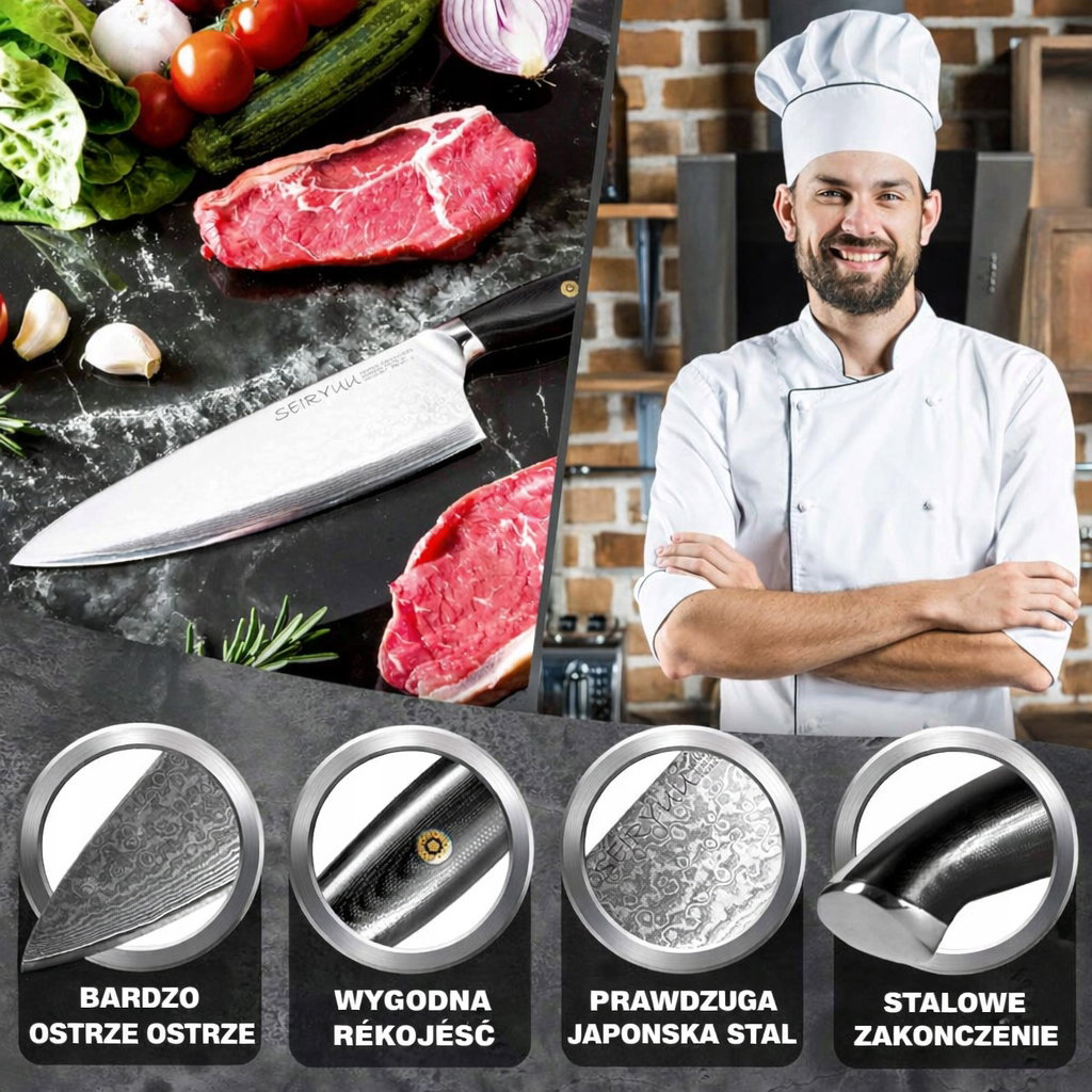 SEIRYUU Gyuto japoński Nóż Szefa Kuchni; stal DAMASCEŃSKA 67 WARST