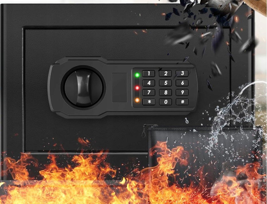 - ✴️【Osobisty ukryty sejf bezpieczeństwa】Jeśli masz wygodne i stosunkowo bezpieczne miejsce na gotówkę, biżuterię, ważne dokumenty, do których masz szybki i łatwy dostęp. Ten sejf to dobry wybór. Składa się ze wzmocnionej, masywnej konstrukcji stalowej ściany. Zapewnia fizyczną ochronę przed włamaniem siłą. Połączenie cyfrowego sejfu i ognioodpornej torby może chronić wartościowe przedmioty przed ogniem, cyklonami i trzęsieniami ziemi