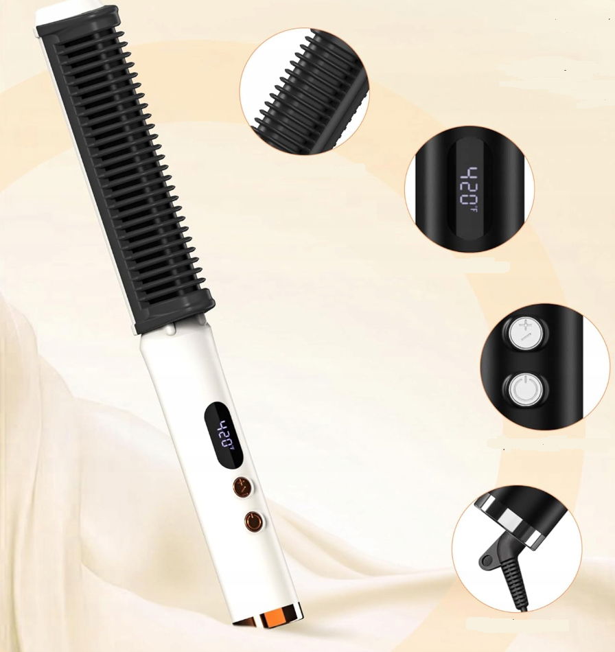 Elektryczna prostownica do włosów z gorącą szczotką posiada 10 trybów ustawień temperatury, które umożliwiają dostosowanie temperatury od 240℉ do 420℉ (115℃-215℃) w zależności od potrzeb. Dzięki wyświetlaczowi LED wskazującemu temperaturę łatwo znajdziesz idealną i zdrową temperaturę dla swoich włosów.
