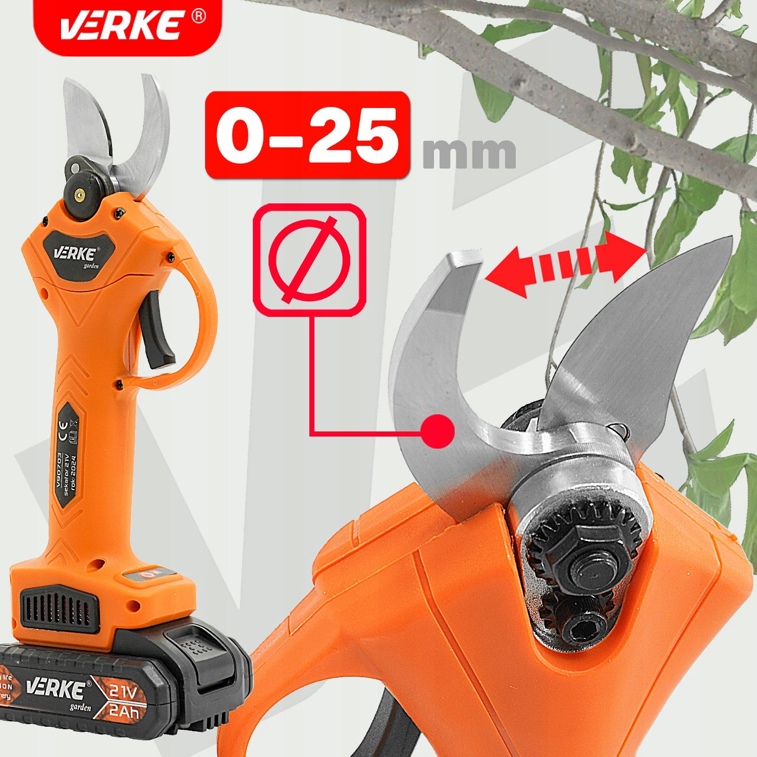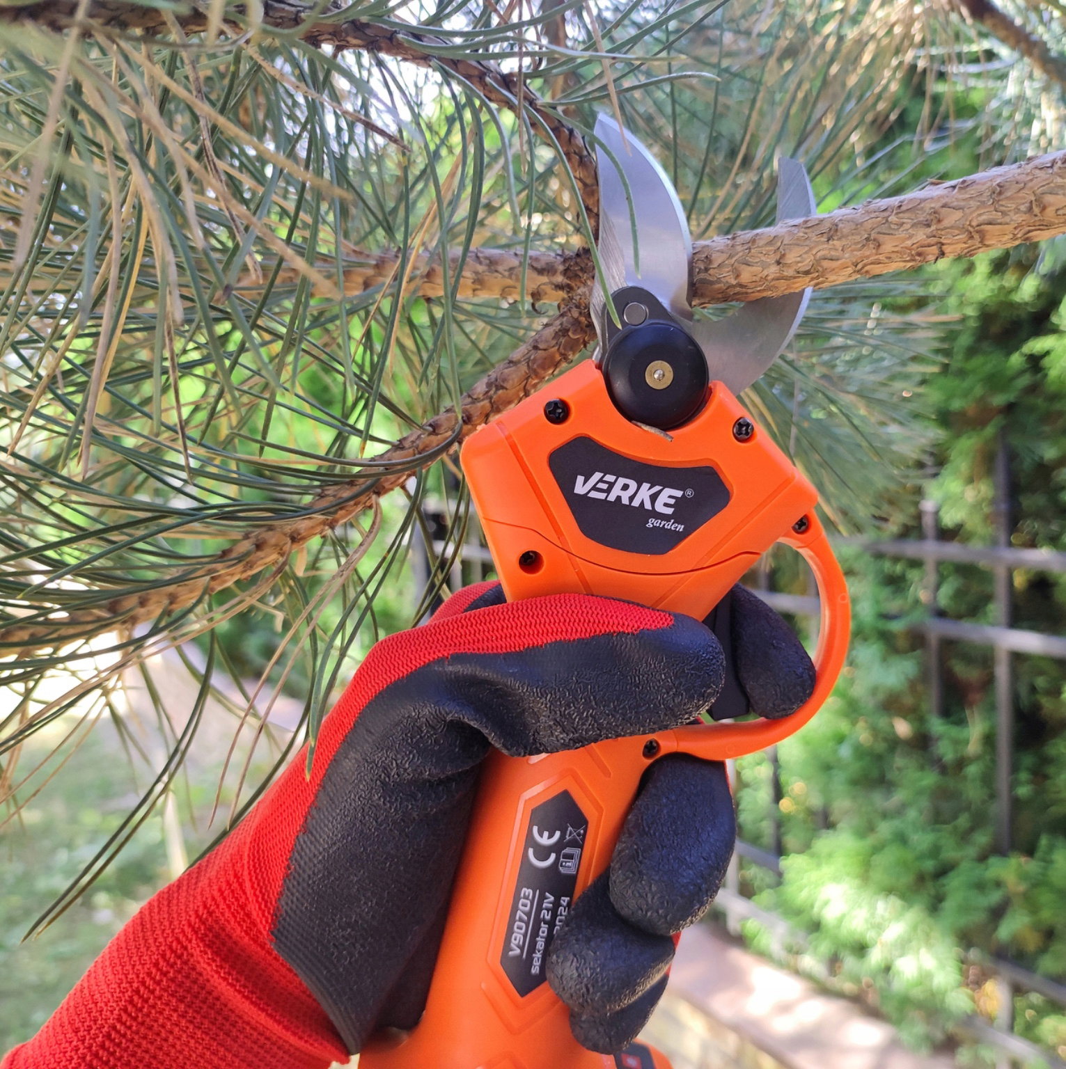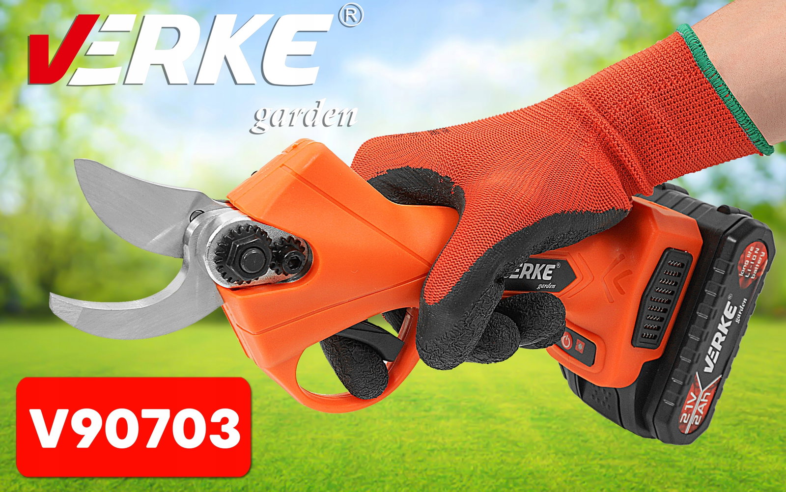 Sekator akumulatorowy Verke Garden to idealne narzędzie do pielęgnacji drzew, rabat kwiatowych i krzewów. Z łatwością tnie i przycina gałęzie o średnicy do 25 mm. Wysokiej jakości ostrze ze stali japońskiej typu SK5 pozwala na wykonanie schludnego cięcia, zdrowego dla każdej rośliny, którą należy przyciąć.