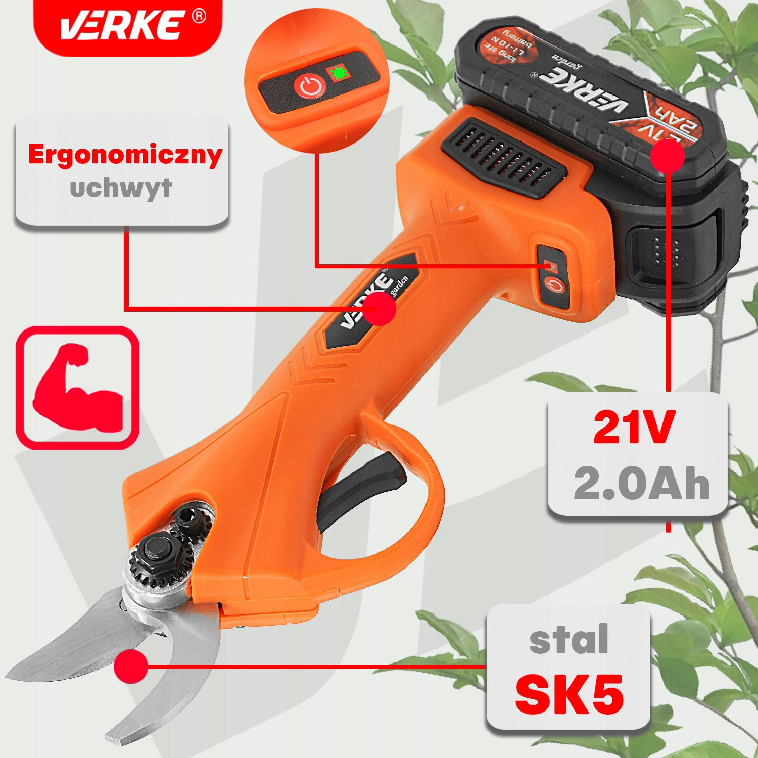 ► Bezprzewodowy sekator VERKE jest lekki, idealny dla kobiet i osób starszych.