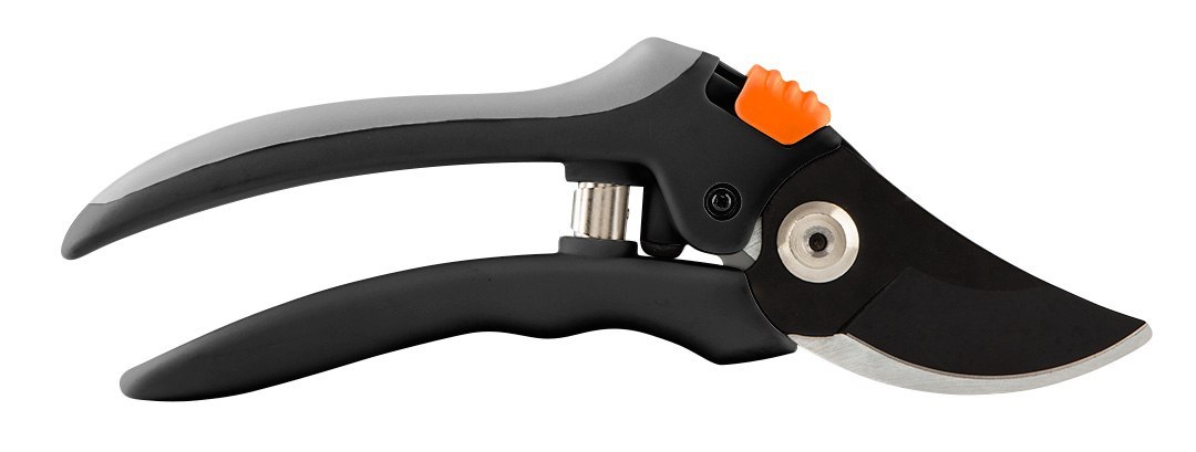 Sekator by-pass, długość całkowita 200 mm, maksymalna średnica cięcia 18 mm, ergonomicznie ukształtowany uchwyt z miękkimi gumowymi uchwytami TPR dla lepszego chwytu i komfortu, łatwa i bezpieczna blokada kciukiem dla prawej i lewej ręki, regulowany rozstaw ostrzy, ostrza z wysokiej jakości hartowanej stali, ostrza z powłoką nieprzywierającą, ostrze do świeżego drewna,