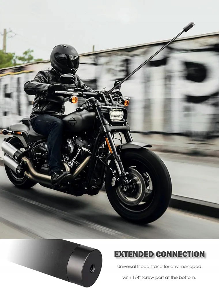 - ✔ Wszechstronność: kijek do selfie jest wyposażony w standardowy gwint 1/4" i dlatego może być używany z wieloma różnymi aparatami i powiązanymi urządzeniami – takimi jak np.