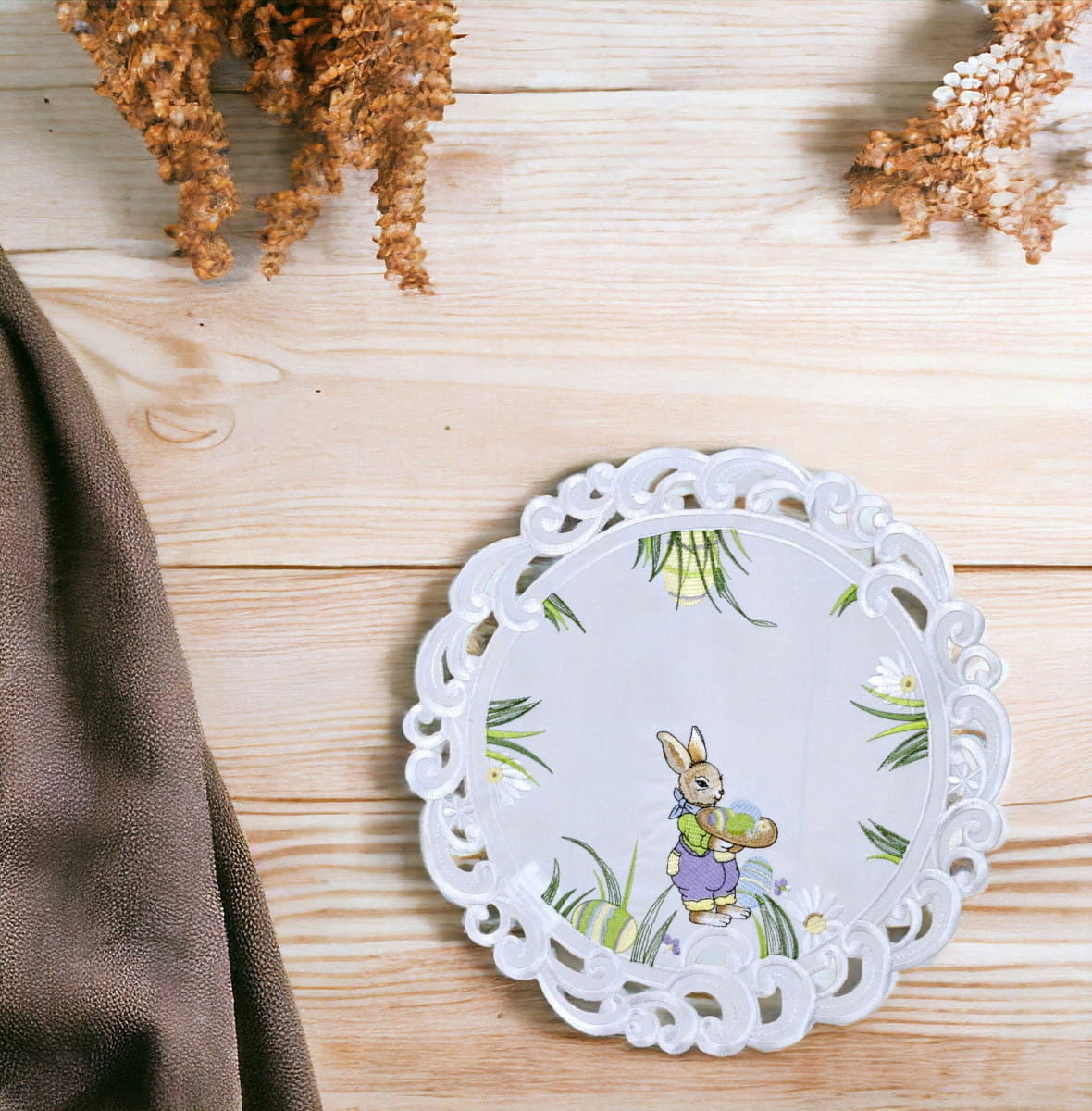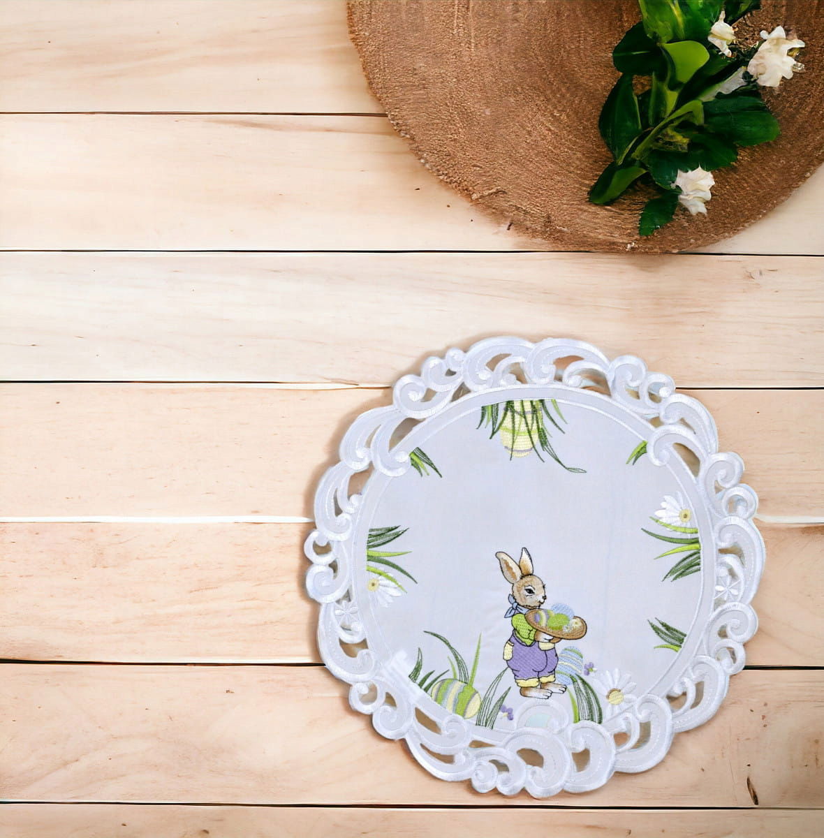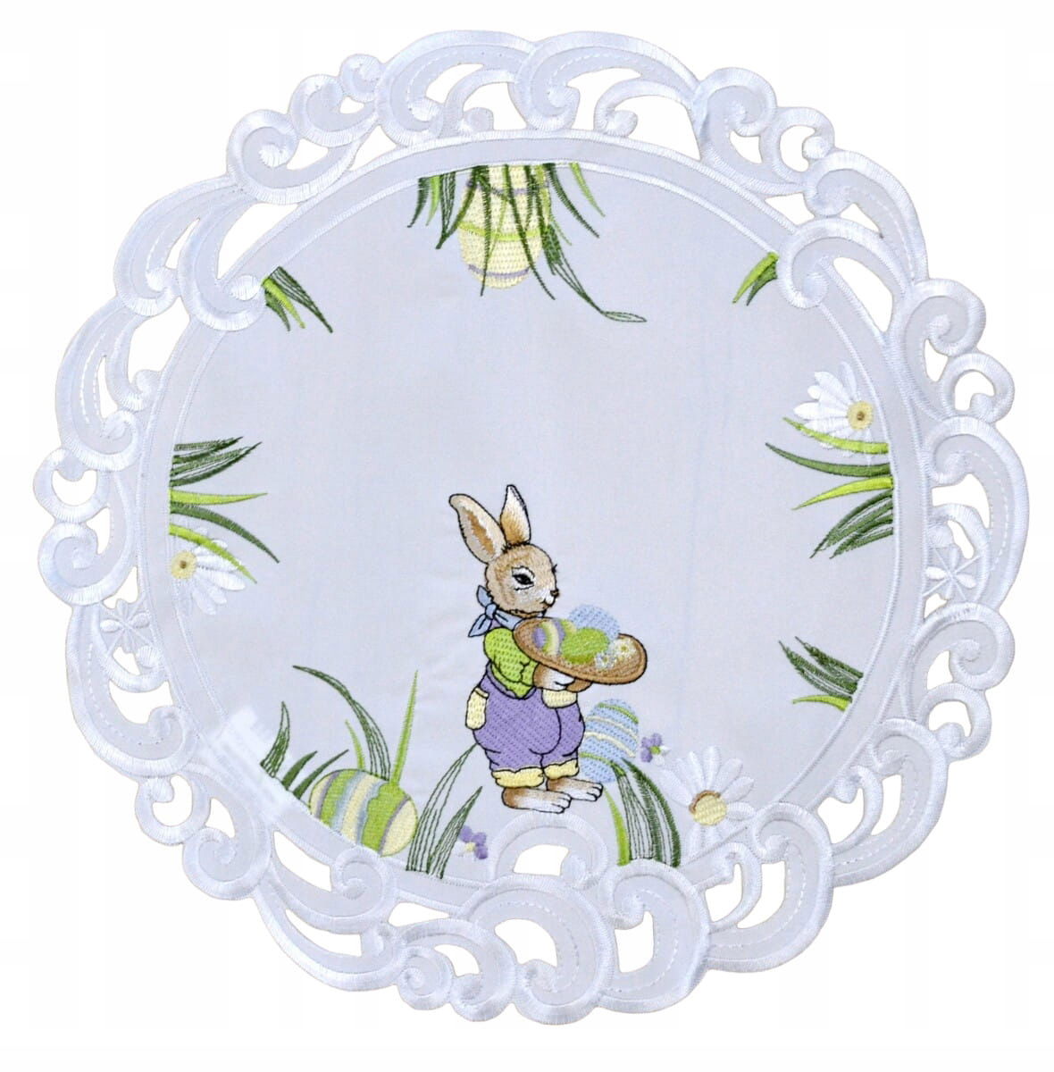 Serwetka wielkanocna na stół o średnicy 40 cm z uroczym króliczkiem to doskonały dodatek, który podkreśli wyjątkową atmosferę świąteczną przy wielkanocnym stole. Ręcznie wykonana serwetka z wysokiej jakości materiałów gwarantuje zarówno estetykę, jak i trwałość.