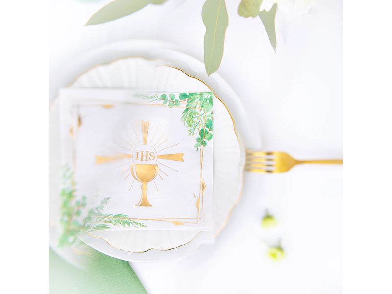 Serwetki, Komunia Święta, białe "Kielich IHS", 33 cm x 33 cm, 10 szt.