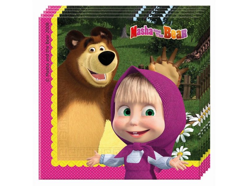 Serwetki, Masha And The Bear (Masza i Niedźwiedź), 33 cm x 33 cm, 20 szt.