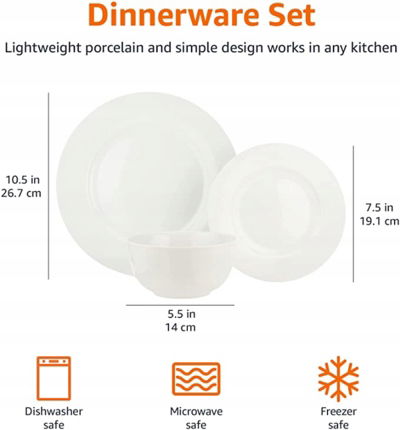 Zestaw talerzy porcelanowych Amazon Basics CX01BI charakteryzuje się wysoką jakością marki oraz innowacyjnym wzornictwem. Zarówno w życiu codziennym, jak i na specjalne okazje jest ten zestaw talerzy bardzo polecany.