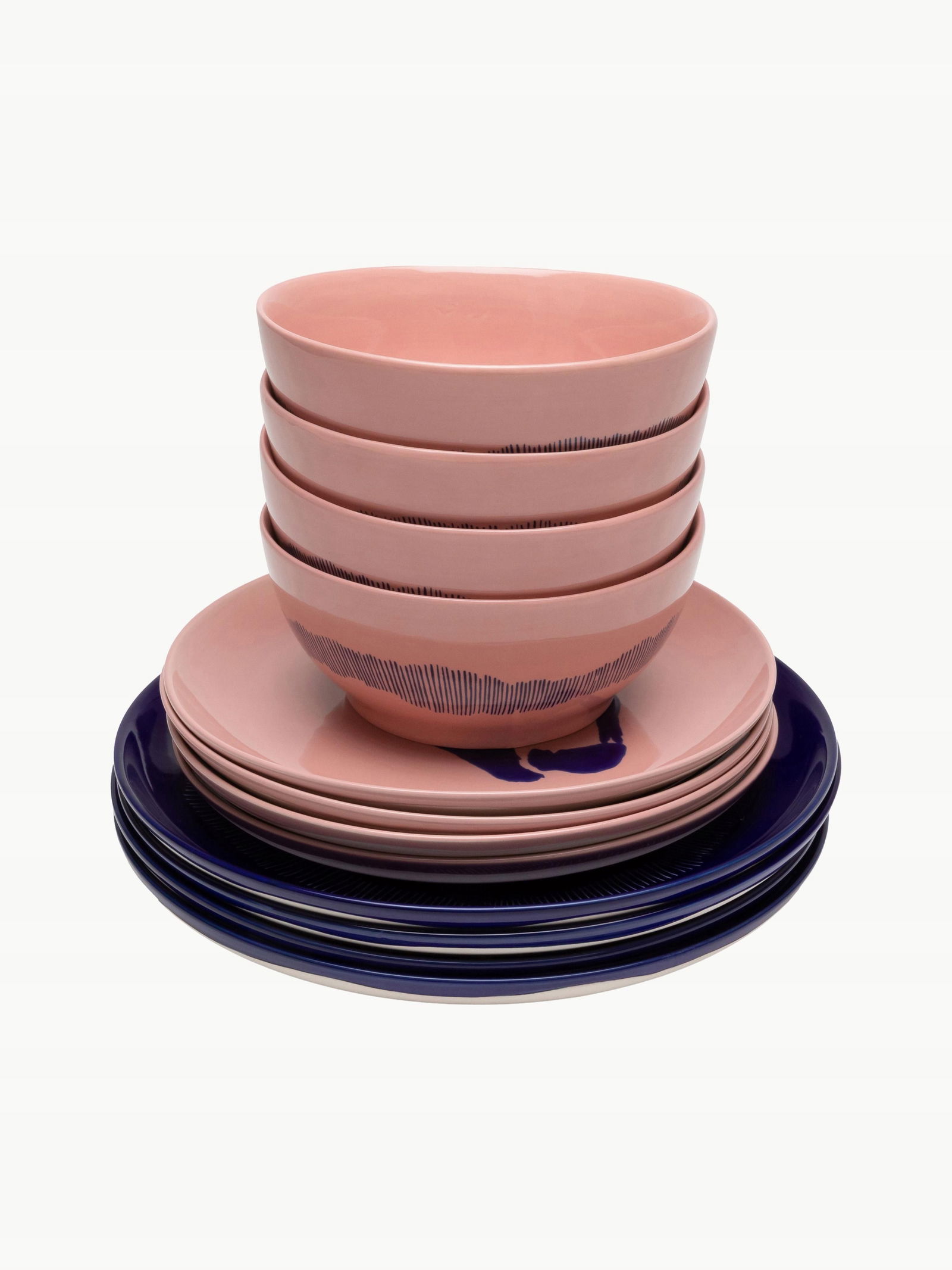 Ten 12-elementowy komplet zastawy stołowej z reaktywną glazurą składa się z czterech talerzy dużych, czterech talerzy śniadaniowych i czterech miseczek.