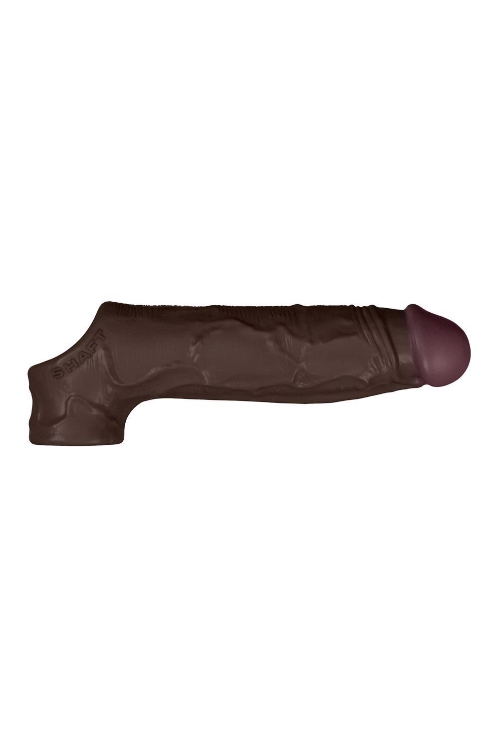 Go for an unforgettable experience of deeper impact for both with the masterfully sculpted Shaft Sheath. Made of 100% Flexiskin™Liquid Silicone. Sleeve, Model F, size 2Product size 8.8 inch / 22,3 cmInsertable length 6.9 inch / 17,5 cmProduct diameter 1.9 inch / 4,8 cmColour: MahoganyInnovative Flexiskin™ feels just like skin: soft, squeezable,and flexible. This uniquely formulated liquid silicone is not only extremely soft and pleasing to the touch,but also hypo-allergenic and non-porous, so bacteriacan’t become trapped in it. This makes SHAFT highly realistic and completely safe for the body.Another unique feature of SHAFT is the naturalisticdual colour of the item. The soft head differs in colour from the shaft. Such coloration makes the sleeve unbelievably realistic.