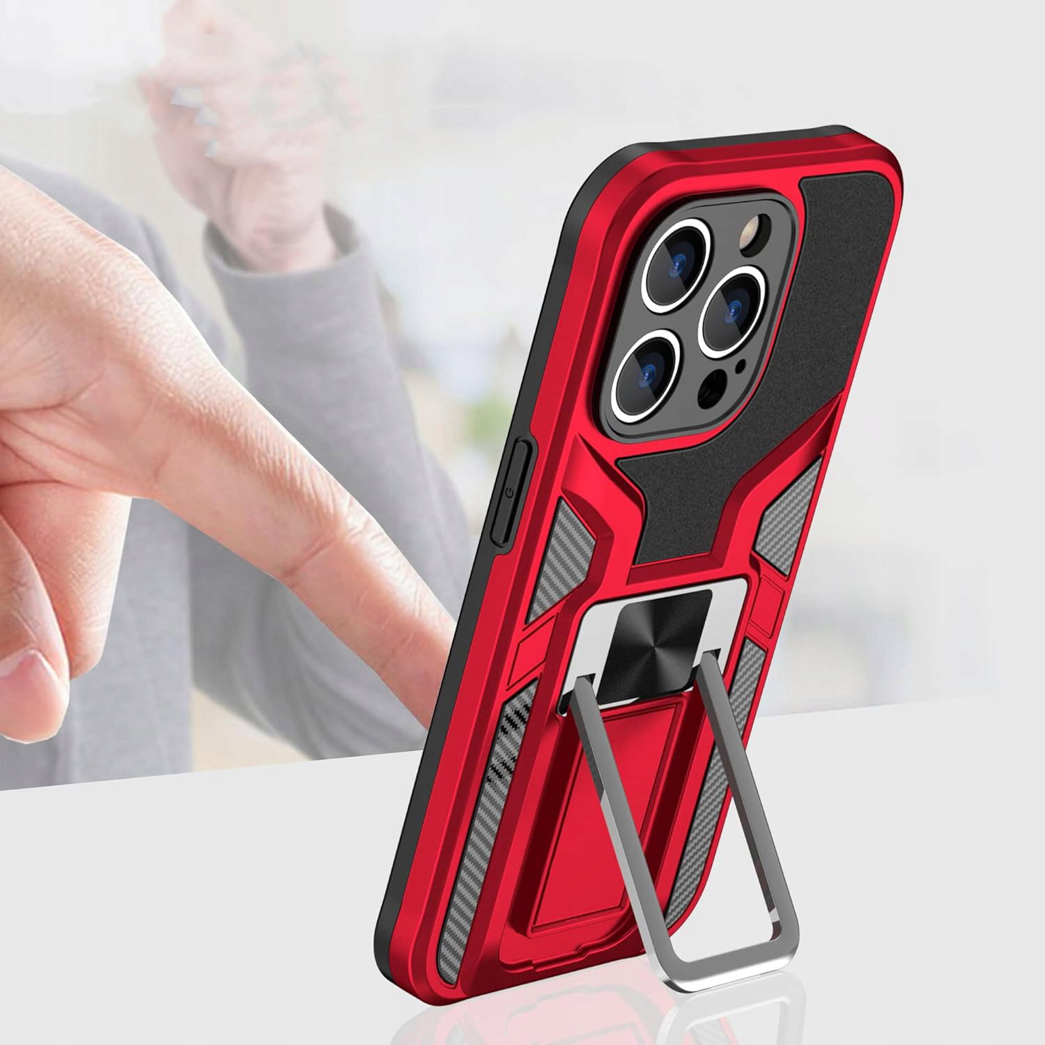 - Materiał: poliwęglan (PC), silikon (TPU), metal