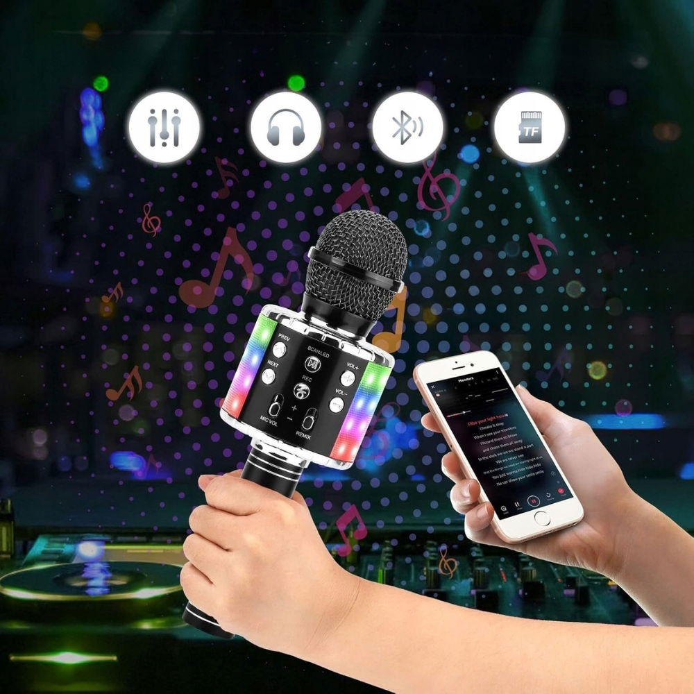Rozkręć każdą imprezę z bezprzewodowym mikrofonem karaoke ShinePick! Ten nowoczesny mikrofon łączy w sobie aż cztery funkcje: mikrofon, głośnik Bluetooth, odtwarzacz muzyczny i rejestrator głosu. Idealny dla dzieci i dorosłych, kompatybilny z Android, iOS, komputerem czy TV – to przenośna rozrywka, gdziekolwiek jesteś!