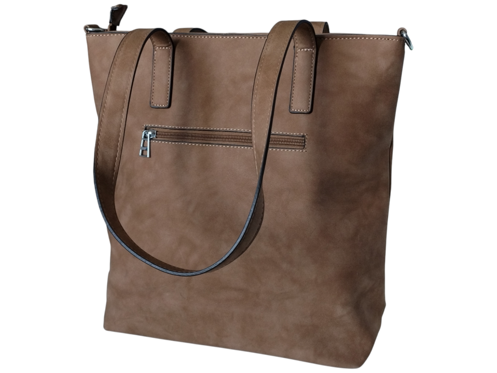 Shopper Bag Brązowa Klasyczna Pojemna Torebka Damska z Długimi Uszami