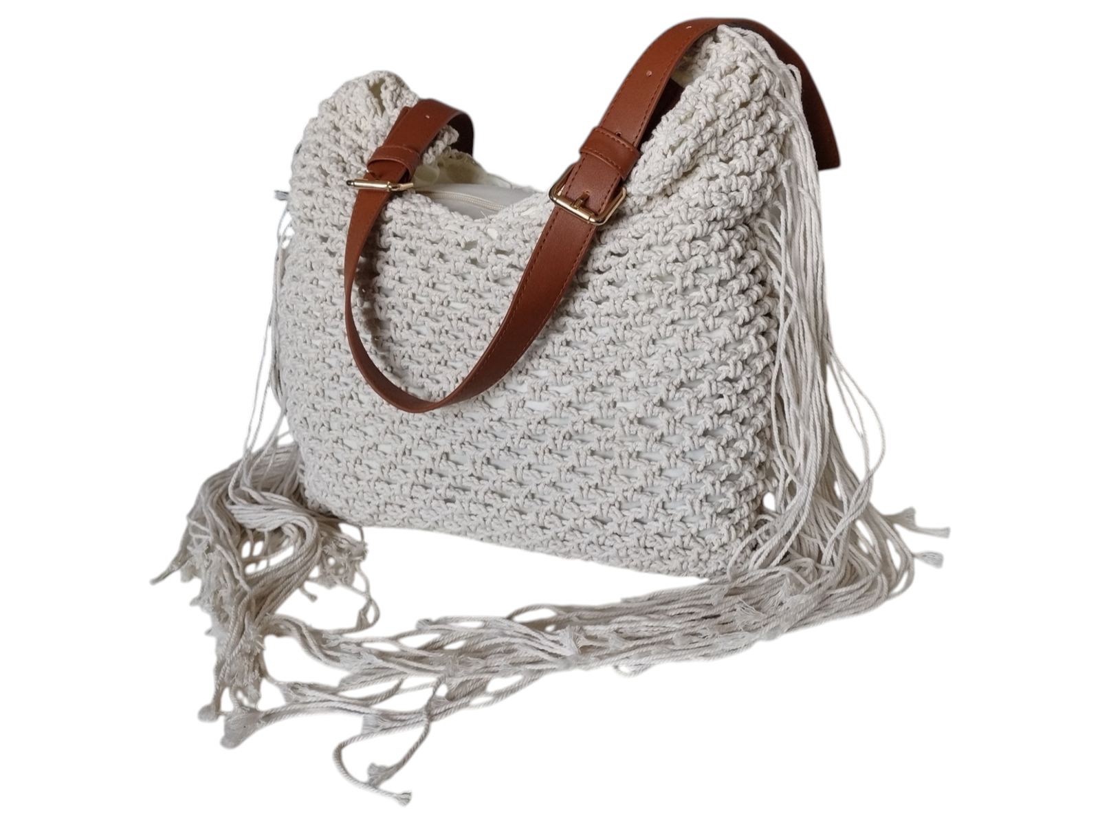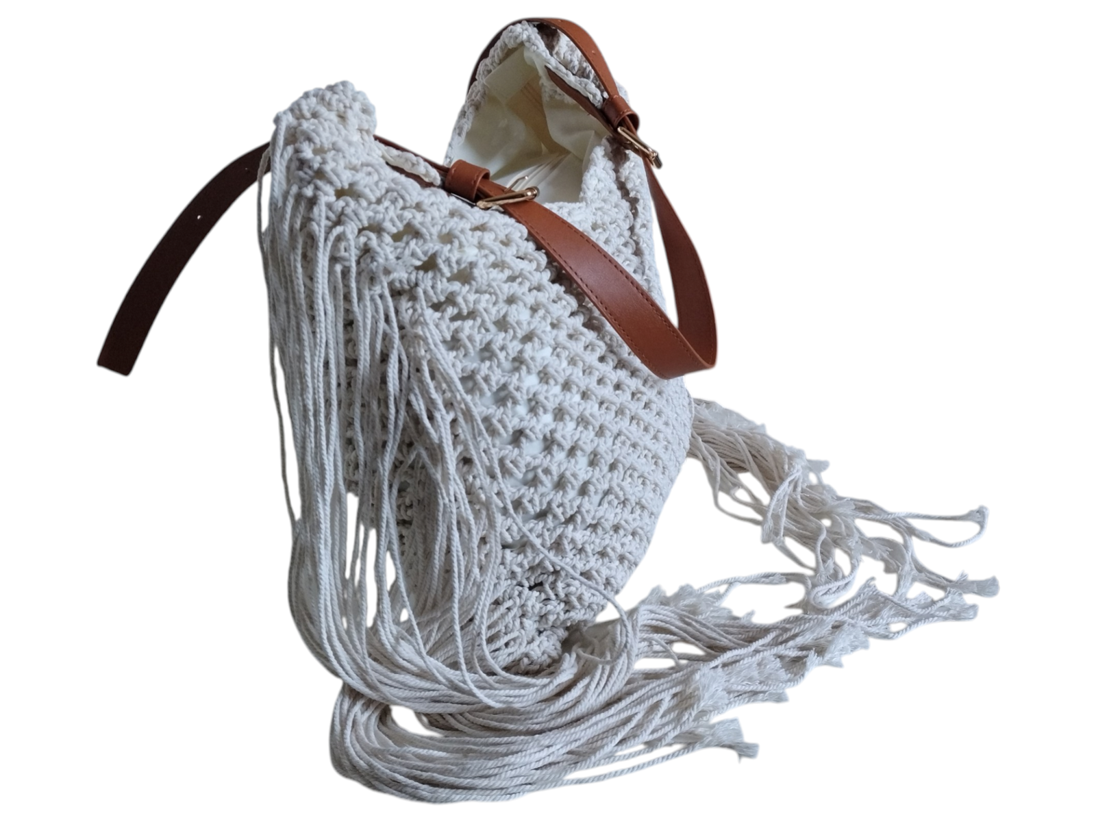 Shopper Torebka Damska, Modna Miejska Torba na Lato z Tkaniny, Biały