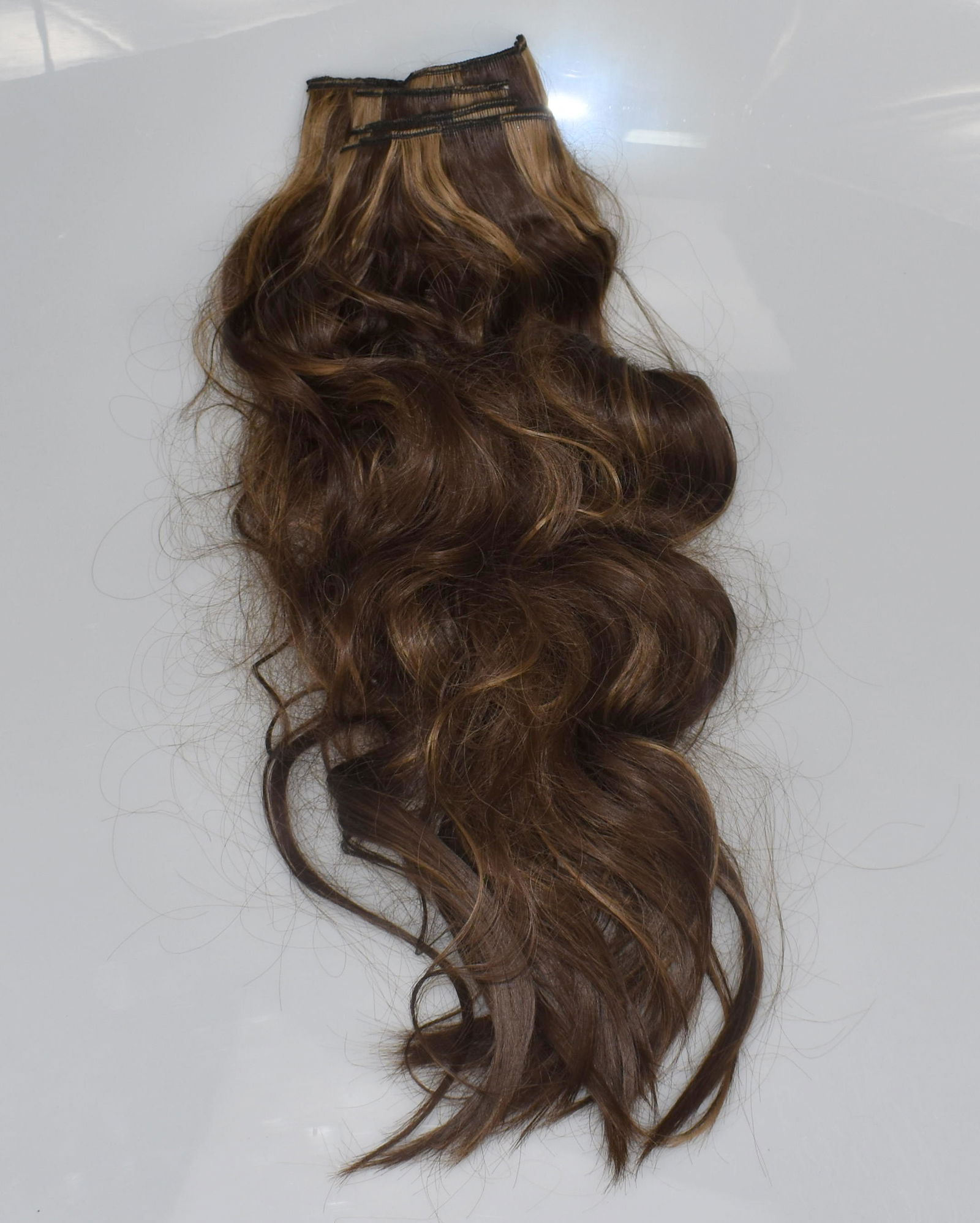ShowJarlly Clip In 60 cm brąz faliste włosy syntetyczne 4 sztuki