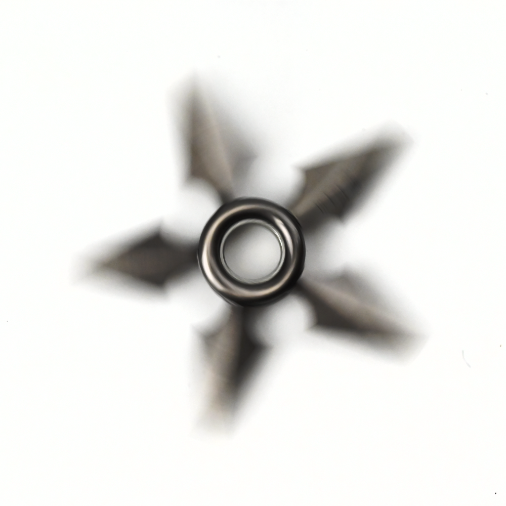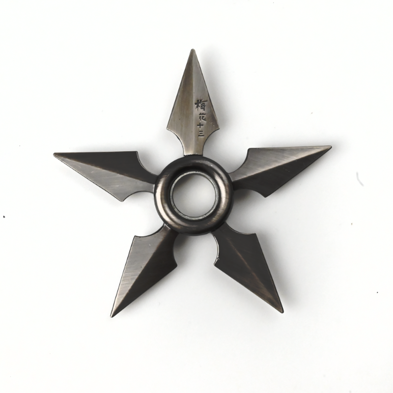W świecie Naruto każdy shinobi zna chłód metalu i ten moment „klik”, kiedy rzut idealnie siada — a ten Shuriken zamienia kultową broń w poręczny gadżet do kręcenia, który naprawdę możesz mieć przy sobie. Ma 8 cm, więc jest na tyle duży, by robić wrażenie na biurku i dobrze leżeć w dłoni, a jednocześnie na tyle kompaktowy, żeby wrzucić go do plecaka na konwent, do szkoły albo na przerwę w pracy. To fajny, nienachalny sposób na pokazanie zajawki — do kolekcji albo jako „propowy” akcent do ita baga, cosplayu czy na półkę. Wykonany z metalu w ciemnym, „gunmetalowym” odcieniu, ma pięcioramienny kształt z naprzemiennymi, lekko szczotkowanymi refleksami i ciemniejszymi panelami, które wyglądają jak porządnie „wykute”. Krawędzie są wyraźne, a końcówki ostre i fasetowane; na jednym ramieniu widać też drobne grawerowane znaki. W środku jest gładki, okrągły pierścień z łożyskiem — idealny pod kciuk i palec, żeby kontrolować obroty. Jedno pstryknięcie i masz przyjemnie płynny, równy wir — świetny do skupienia, wyciszenia po grze albo po prostu do zajęcia rąk.
