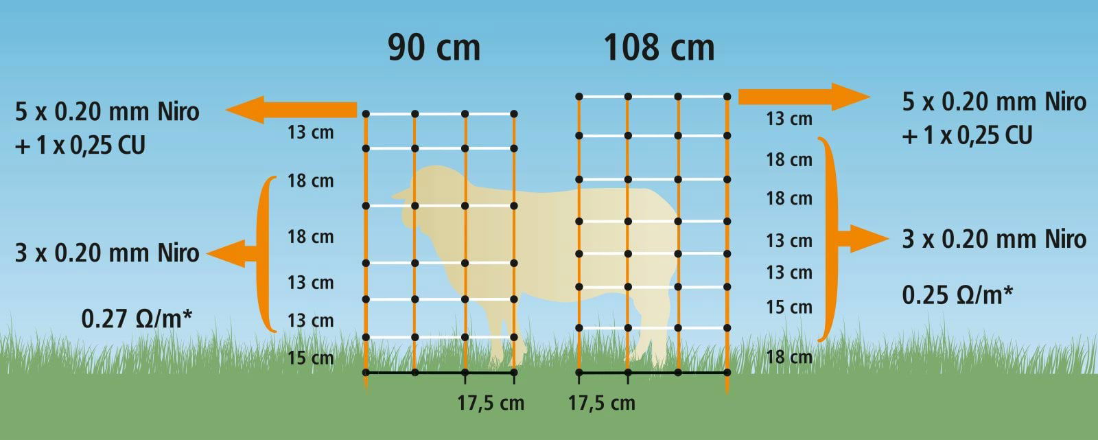 Siatka dla owiec TopLine Net, 50m, 90 cm, poj. szpic, biało-pomarańczowa, Kerbl