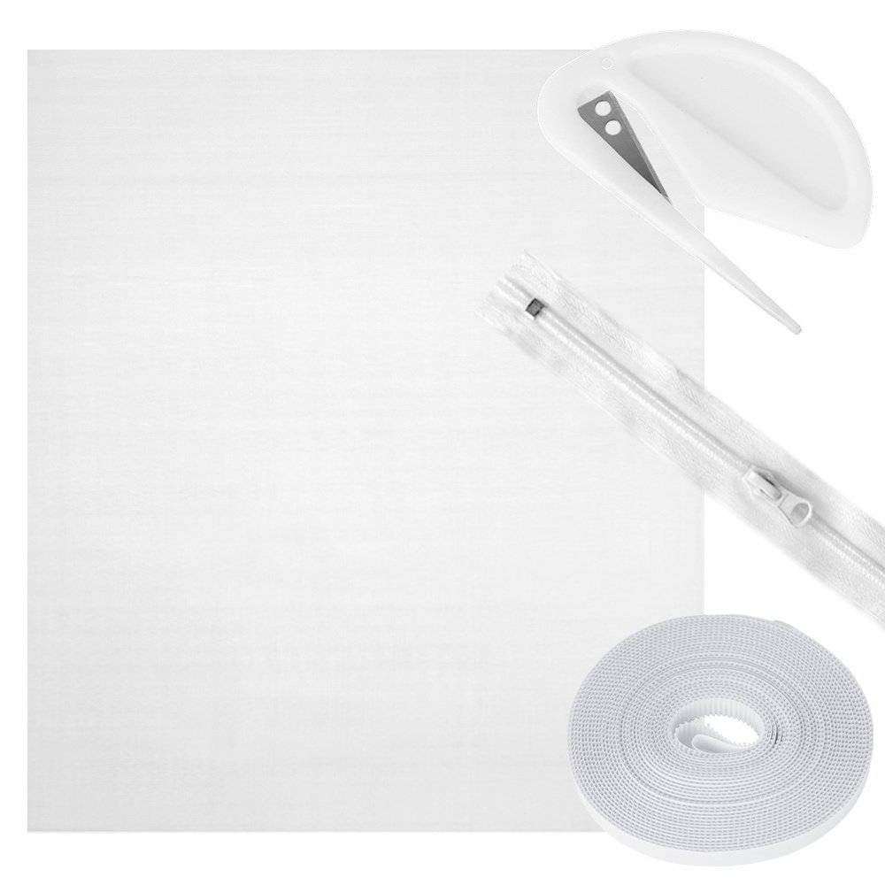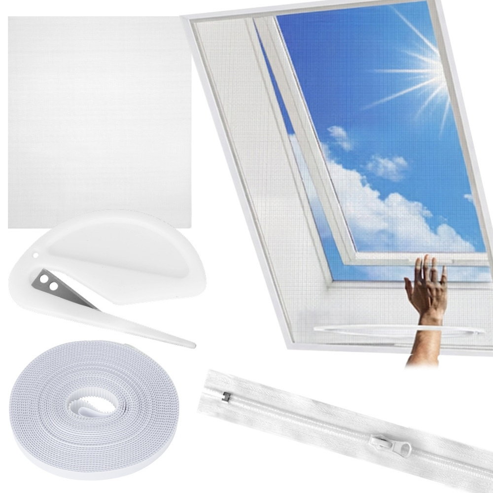 Moskitiera dachowa w kolorze białym w zestawie z akcesoriami do montażu. Moskitiera jest uniwersalna, gdyż możemy ją odpowiednio dociąć do dowolnego rozmiaru okna dachowego. Dzięki siatce unikniesz w pomieszczeniach z oknem dachowym niechcianych owadów.