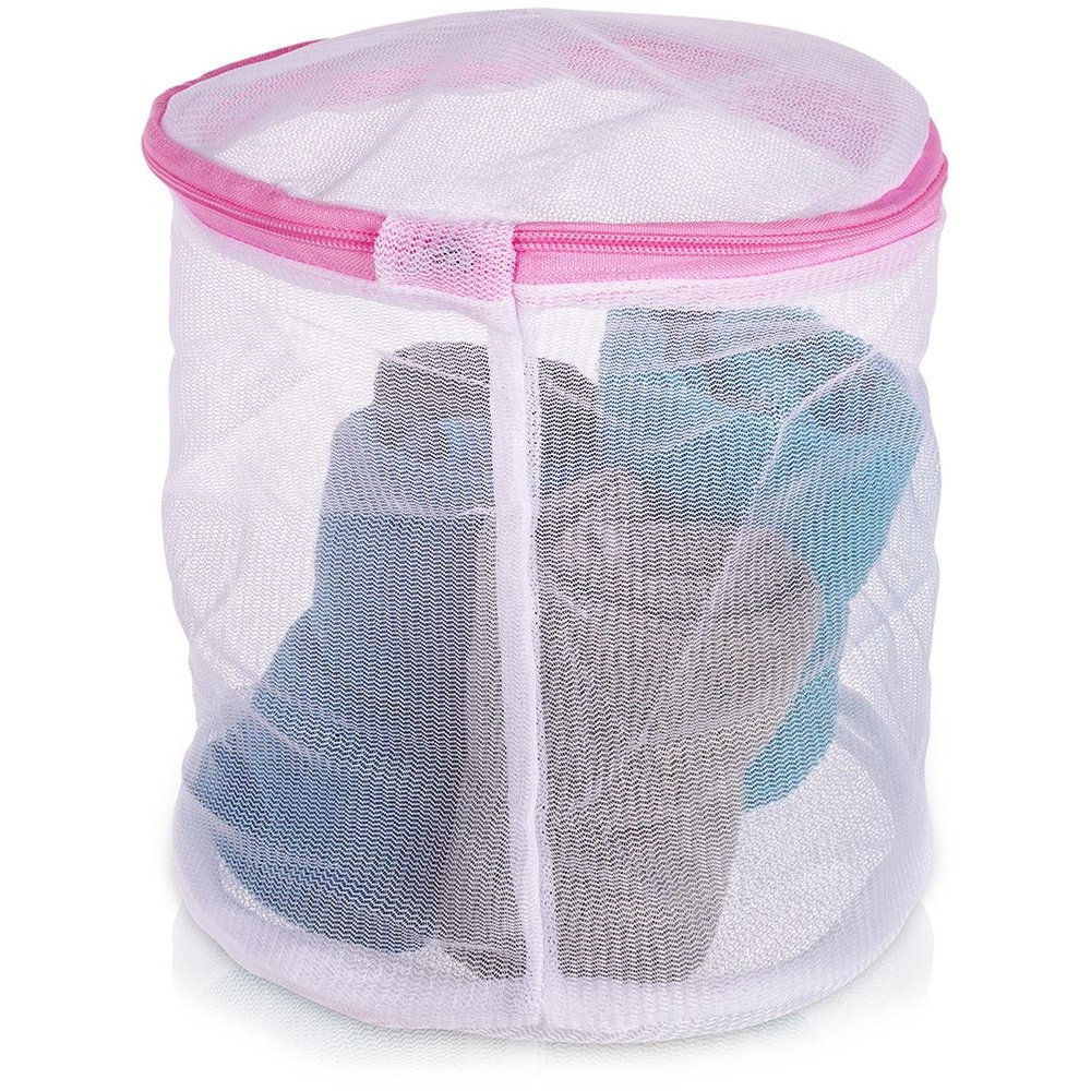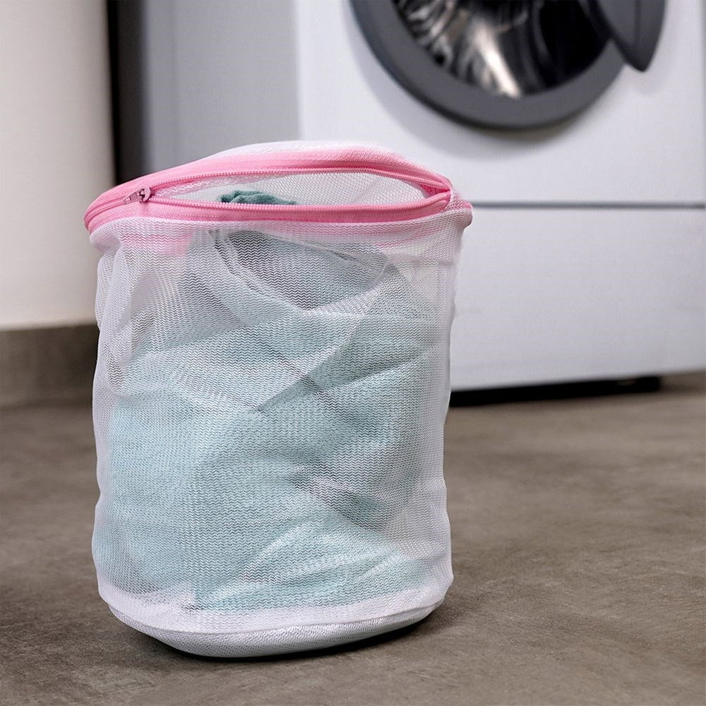 PRAKTYCZNA - Siatka do prania bielizny i ubrań. Model szczególnie polecany do prania biustonoszy. Siatka ma wysokość 20 cm oraz średnicę 16 cm.