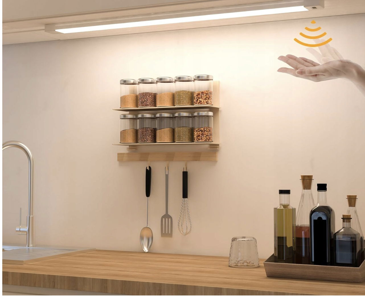 Koniec z szukaniem przełączników. Nasza lampa pod szafkę jest wyposażona w zintegrowany czujnik gestów ręcznych, dzięki któremu można bez problemu włączać i wyłączać światła poprzez proste machanie ręką.