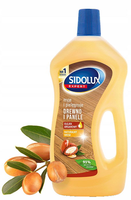 Preparat wyjątkowo skuteczny w czyszczeniu i konserwacji podłóg wykonanych z drewna i paneli. Sekretem jego receptury jest olejek z drzewa arganowego. To dzięki niemu płyn zabezpiecza powierzchnie przed szkodliwym wpływem wilgoci i wody oraz uszkodzeniami, które mogą powodować. Wyróżnia go także piękny, kremowy, perfumowany zapach.