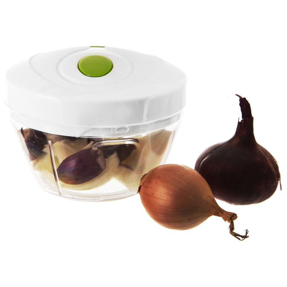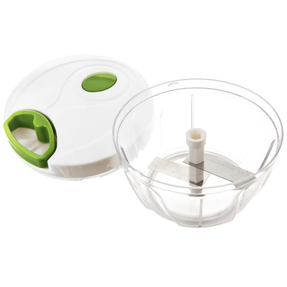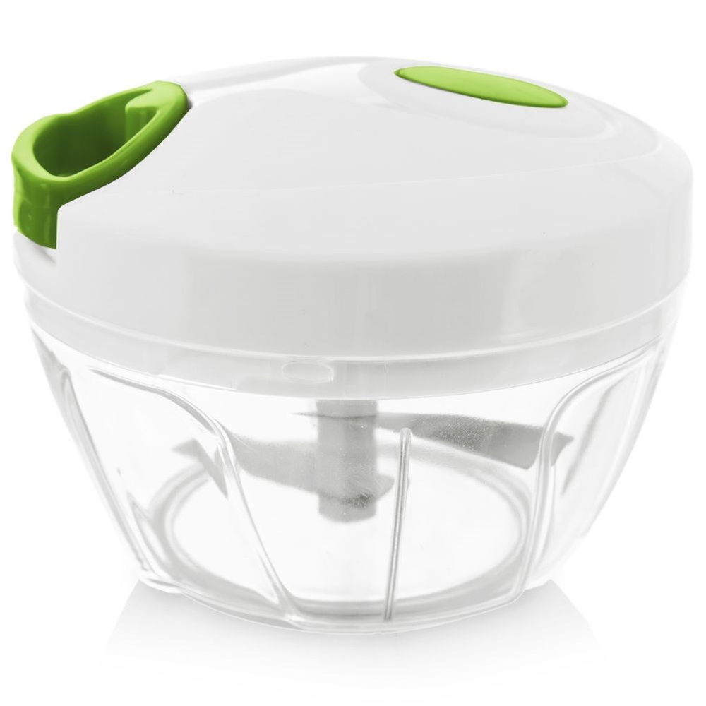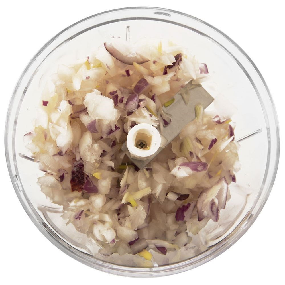 Przydatny siekacz do warzyw, ziół, owoców, cebuli oraz orzechów. Dzięki prostemu mechanizmowi, który uruchomimy za pomocą pociągnięcia uchwytu w pokrywie, siekacz jest łatwy w użytkowaniu. Przezroczysta forma pojemnika pozwoli nam kontrolować stopień rozdrobnienia. Ilością pociągnięć regulujemy stopień rozdrobienia. Podwójne ostrza poradzą sobie bez problemu z rozdrabnianiem. Rozdrabniacz jest wytrzymały oraz wygodny w użyciu, bardzo przydatny w każdej kuchni. Nie zaleca się mycia w zmywarce do naczyń.