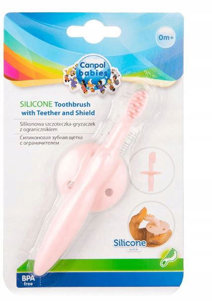 Idealna do rozpoczęcia przygody ze szczotkowaniem dla najmłodszych dzieci. Wykonana z miękkiego i bezpiecznego silikonu, nie podrażnia delikatnych dziąseł maluszków i gwarantuje dokładne czyszczenie pierwszych ząbków. Specjalny ogranicznik chroni przed zbyt głębokim włożeniem szczoteczki do buzi dziecka. Szczoteczka może być stosowana również jako gryzak, u dzieci które nie mają jeszcze ząbków, do masażu i codziennej higieny dziąseł. Schłodzona w lodówce przed podaniem przyniesie ulgę w okresie ząbkowania