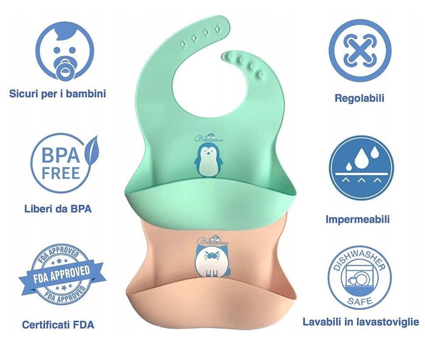 Silikonowe sliniaki dla dzieci 2 szt bezowy i miet
