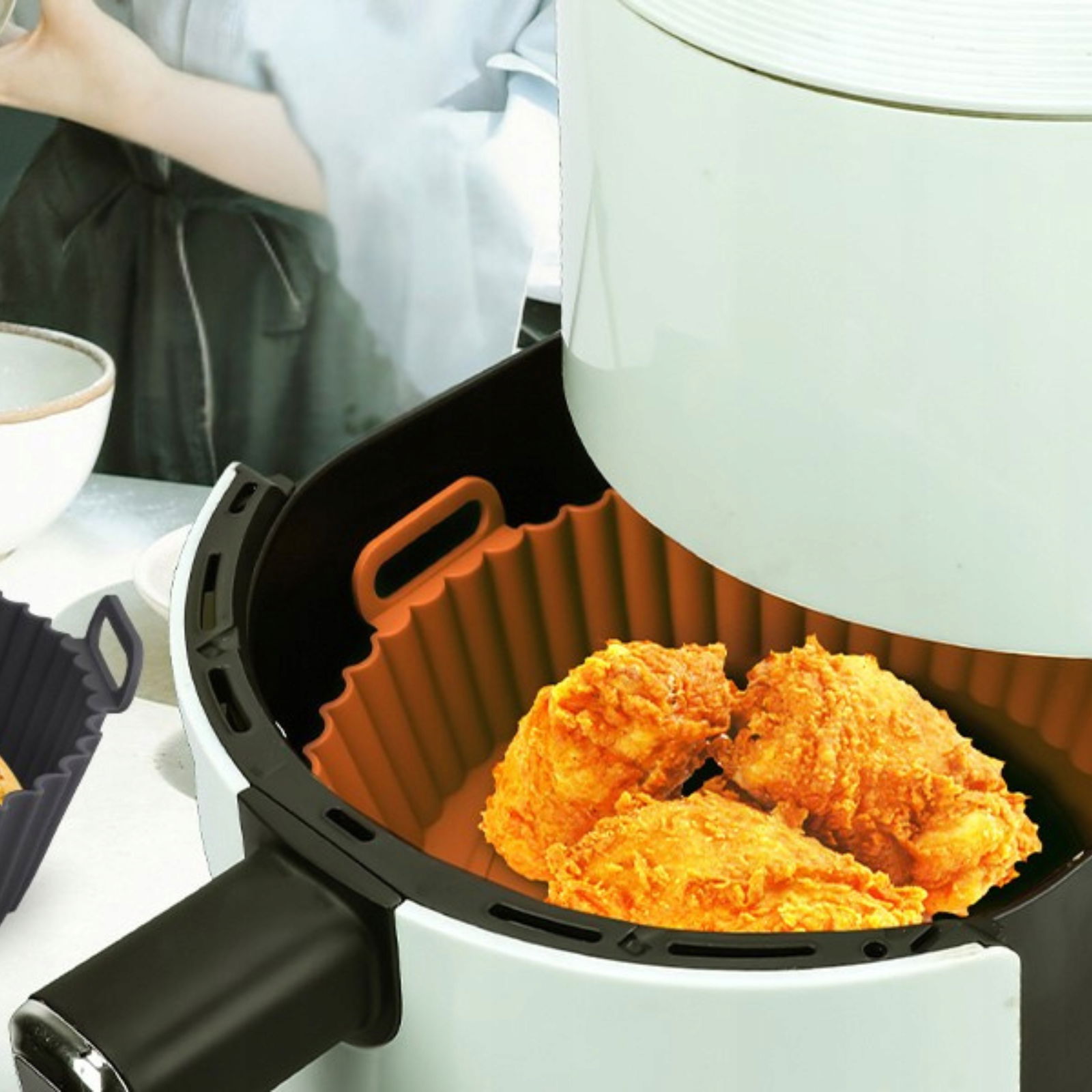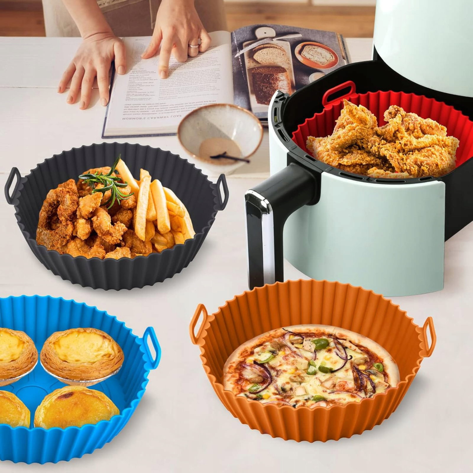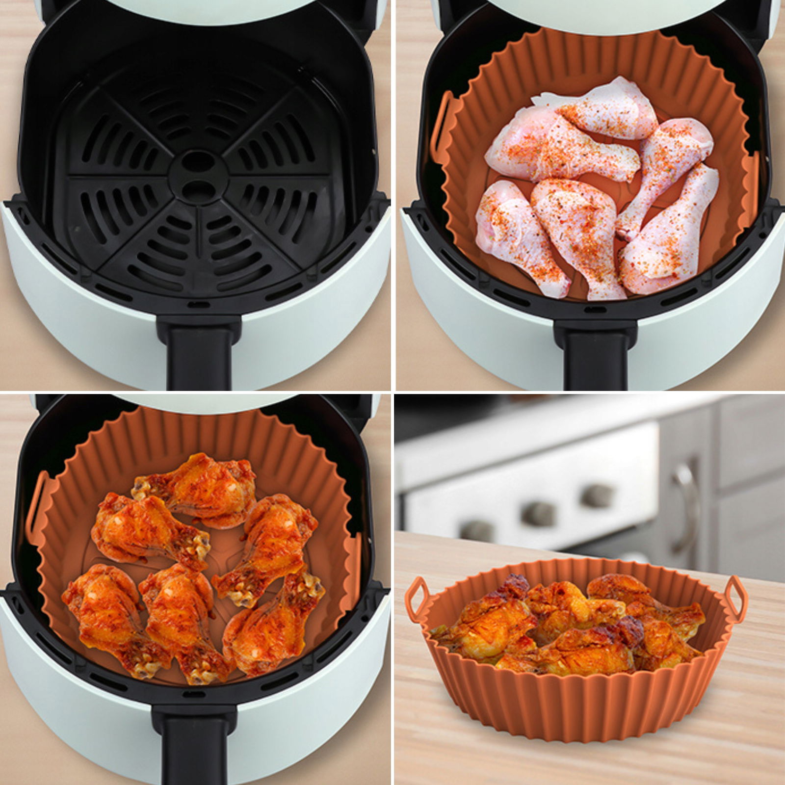 ✅Sylikonowe foremki wielokrotnego użytku to niezastąpiony dodatek do Twojej frytkownicy! Zapewniają łatwe pieczenie i smażenie bez przywierania, dbając o Twoją frytkownicę i zdrowie. Praktyczne, ekologiczne i łatwe w czyszczeniu – koniec z jednorazowymi wkładkami!