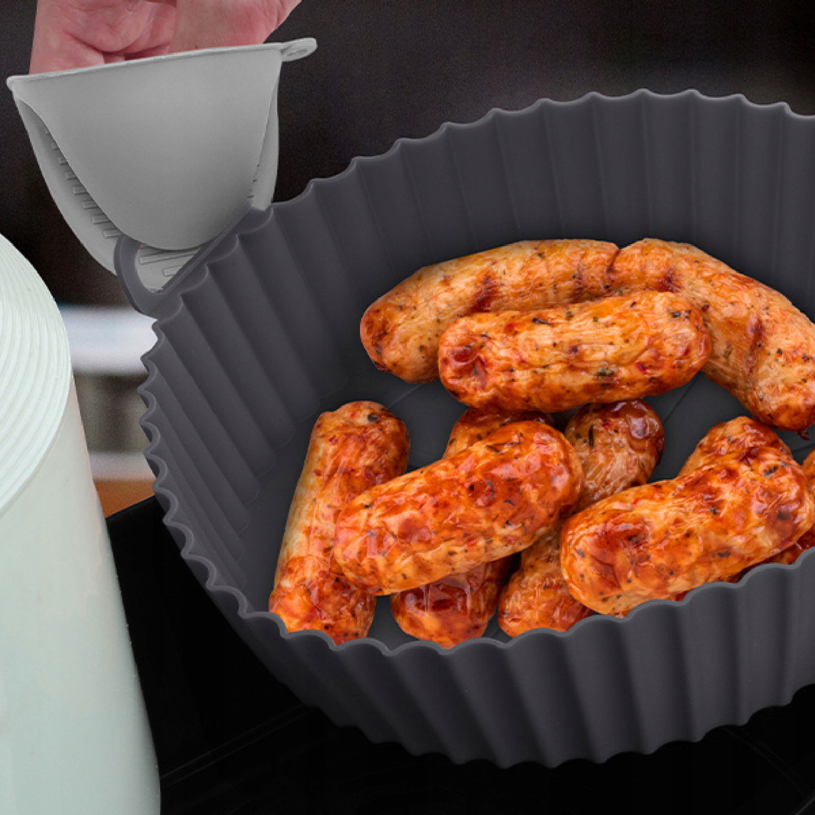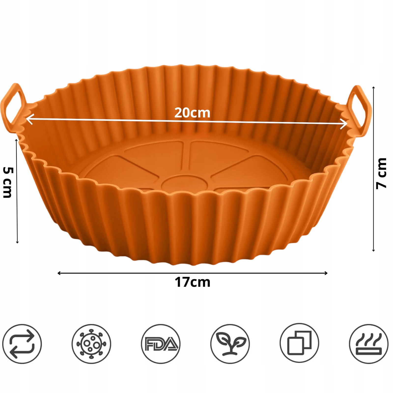 ✅Pasuje do frytkownic o pojemności 5-7,5 l. Dzięki elastycznej konstrukcji idealnie dopasowuje się do różnych kształtów koszy na gorące powietrze.
