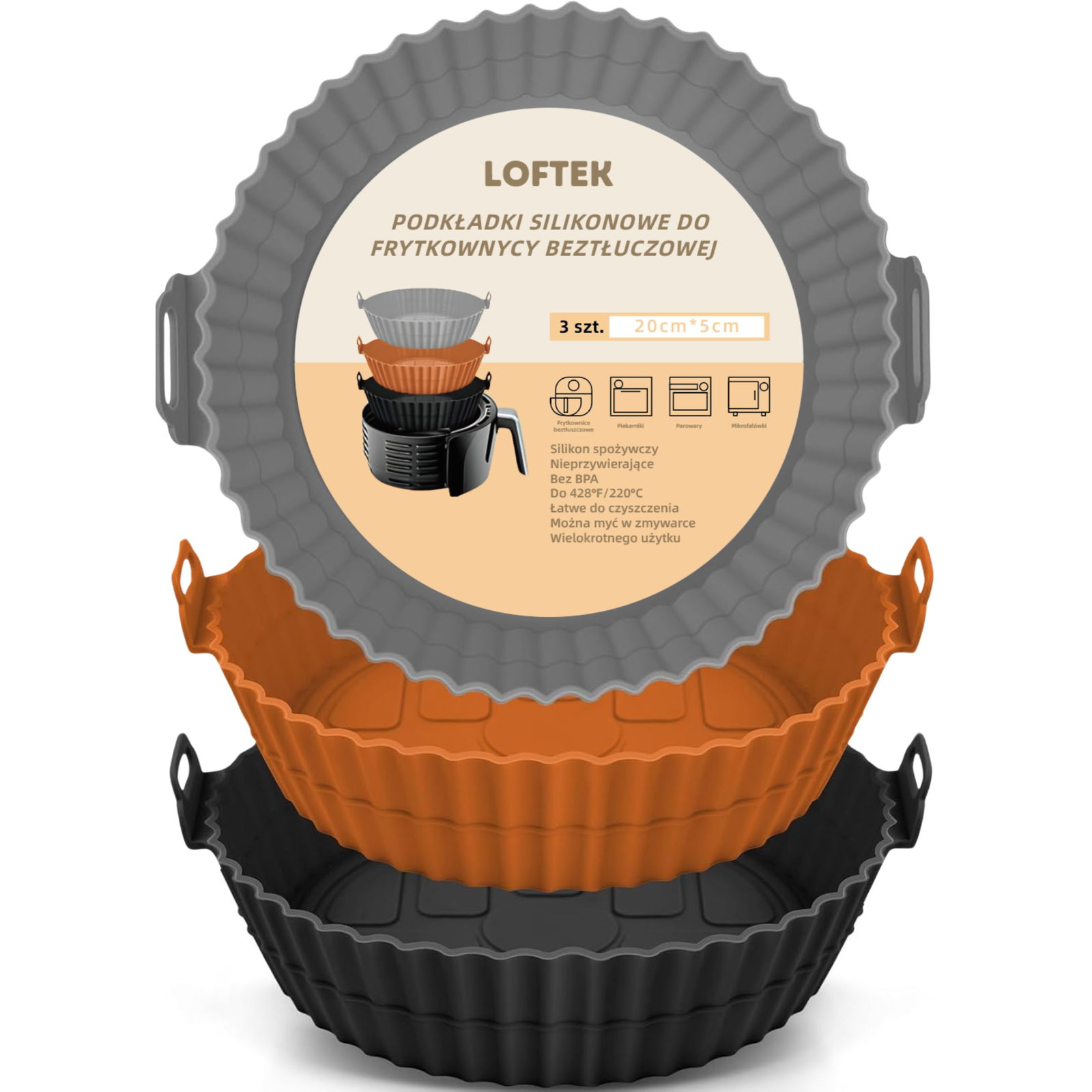 Silikonowy Wkład do Frytkownicy Beztłuszczowej Wielorazowy Zestaw 3szt 20cm