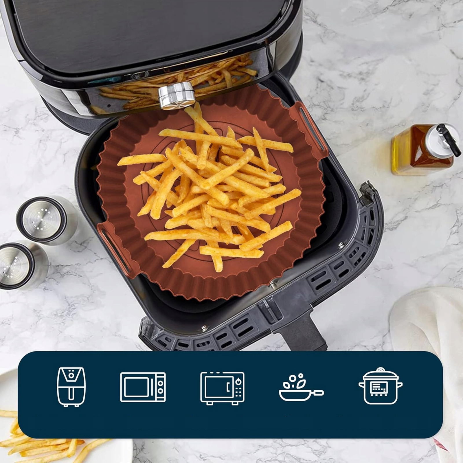 ✅Wielokrotnego użytku, bardziej przyjazne dla środowiska niż jednorazowy papier pergaminowy. Zmniejsza ilość odpadów w kuchni i pozwala zaoszczędzić na dodatkowych akcesoriach do frytkownicy
