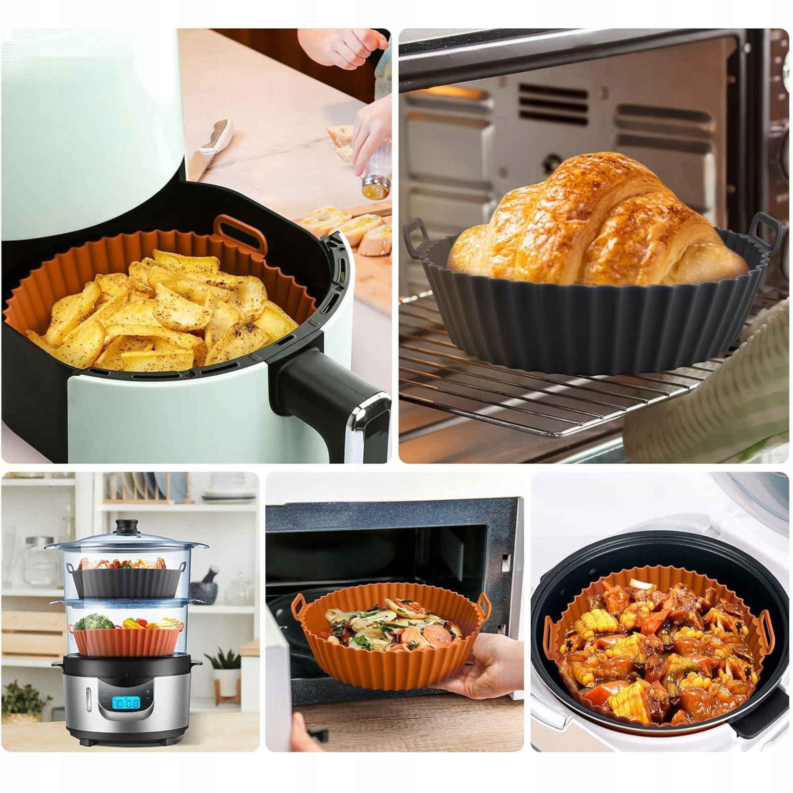✅Sprawdzi się w frytkownicach, piekarnikach, kuchenkach mikrofalowych czy parowarach. Można go używać również do pieczenia ciast, przygotowywania przekąsek czy jako formę do gotowania na parze.