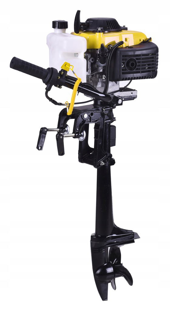 Oferujemy Państwu nowy 4-suwowy zaburtowy silnik spalinowy GERMAN o mocy 5,0 KM. Jego kompaktowa budowa zapewnia łatwe przenoszenie i łatwość montażu na łodzi lub pontonie. Brak osłon silnika to bardzo praktyczne rozwiązanie pozwalające na łatwą kontrolę podzespołów.. Prosta konstrukcja pozostawiła tylko niezbędne elementy co pozytywnie wpływa na bezawaryjność. Napęd jest przenoszony w prosty sposób przez sprzęgło odśrodkowe a uciąg wsteczny uzyskujemy przez odwrócenie silnika o 180 stopni. Zastosowana jest aluminiowa śruba napędowa. Manetka gazu umożliwia łatwe ustawie obrotów silnika na dowolnym poziomie bez konieczności ciągłego trzymania ręką. Śruba dociskowa steru umożliwia zablokowanie kierunku płynięcia. Wieloletnie doświadczenie firmy zaowocowało doskonałym połączeniem niskiej ceny i najwyższej jakości spełniającej wszystkie normy europejskie. Silnik jest objęty pełną gwarancją na 2 lata i nie wymaga przeglądów w autoryzowanych warsztatach. Jedyną czynnością serwisową jest prosta wymiana oleju w silniku i w stopie - co można zrobić samodzielnie. Wszystkie części zamienne posiadamy "od ręki".