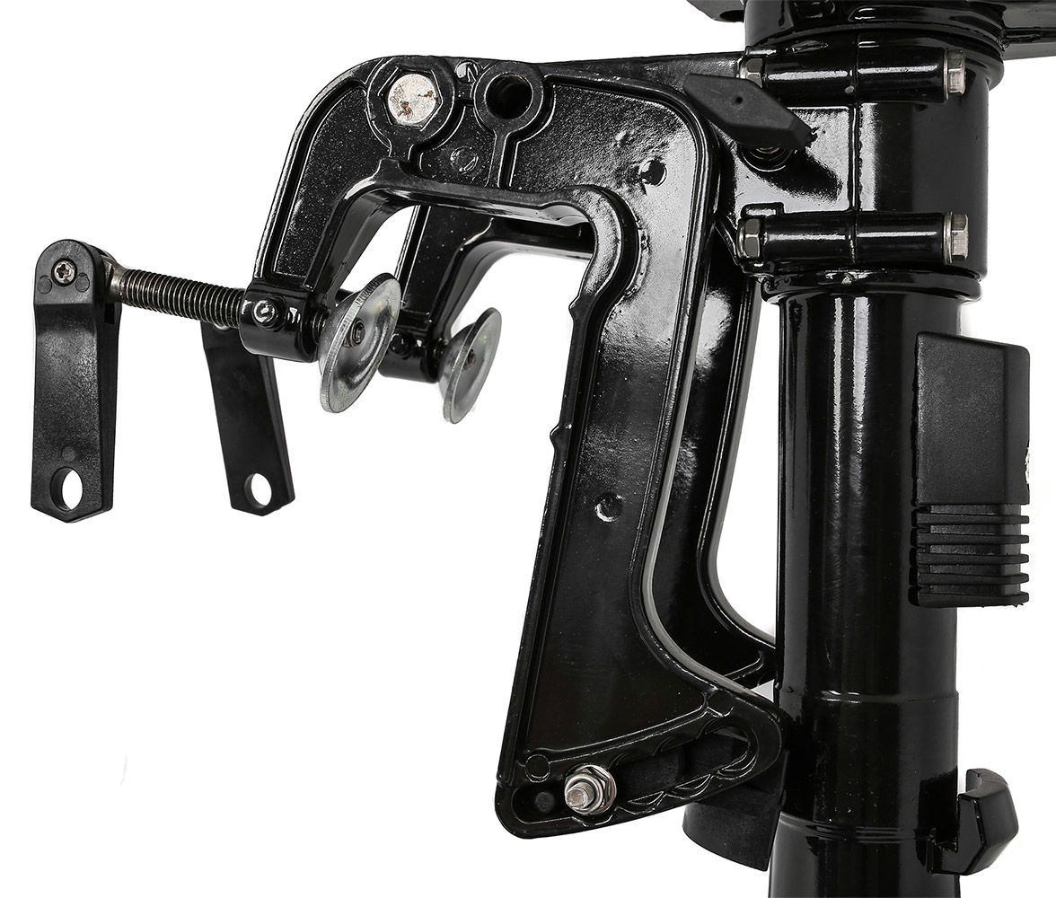 Regulowany uchwyt montarzowy pozwala na zamontowanie silnika do pontonu lub łodzi o maksymalnej wysokości pawęży 42 cm