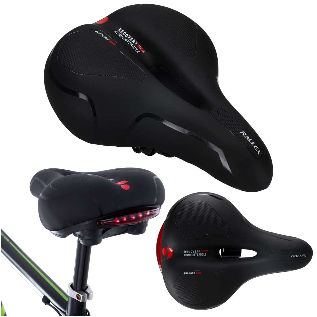 SIODEŁKO ROWEROWE MĘSKIE WYGODNE SPORTOWE SZEROKIE PIANKA LAMPKA LED CZARNE