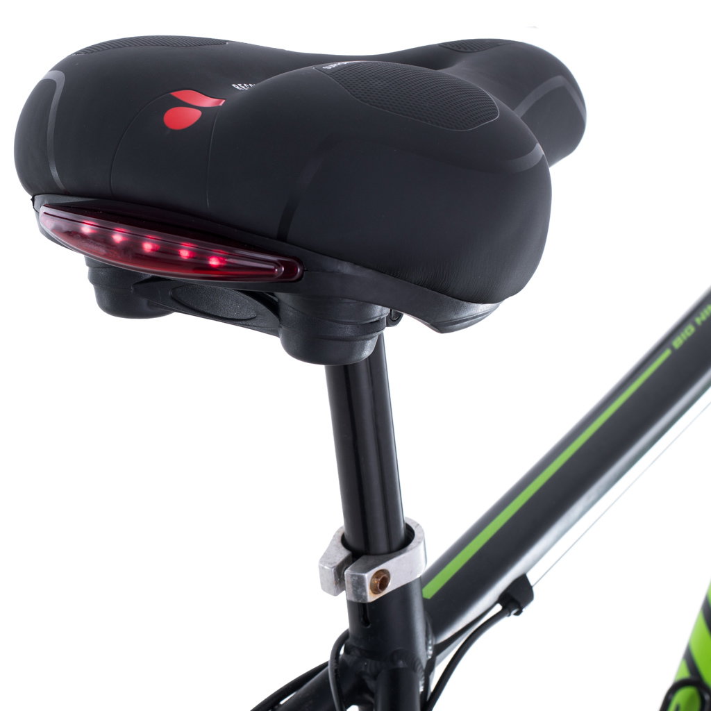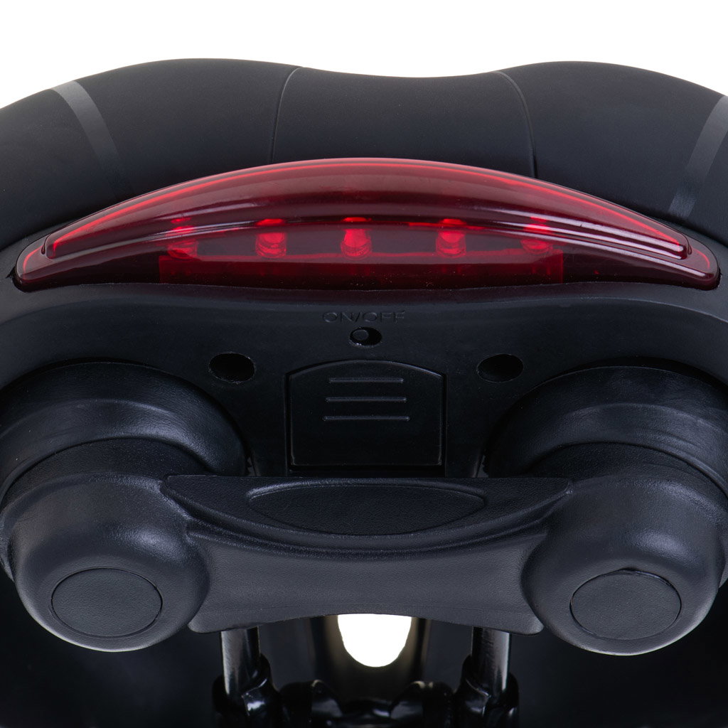 BEZPIECZEŃSTWO Z LAMPKĄ LED - Z tyłu siodełka znajduje się lampka LED z 3 trybami świecenia: stałym, migającym i dynamicznym. Zasilana baterią CR2032, poprawia widoczność rowerzysty i zwiększa bezpieczeństwo jazdy po zmroku.