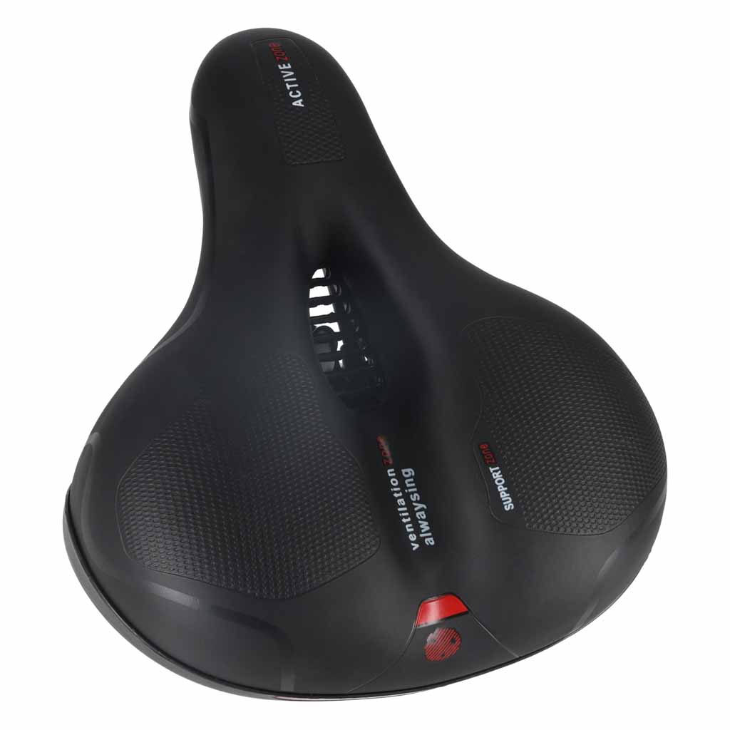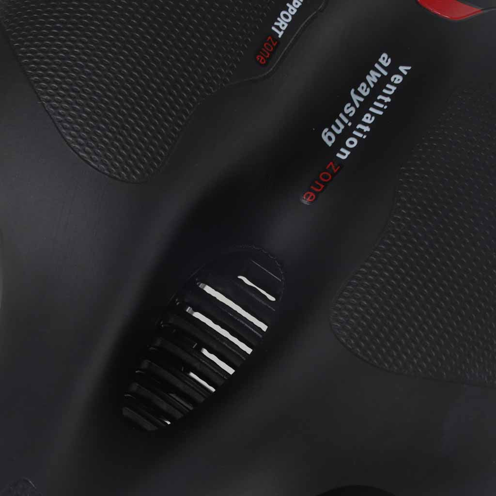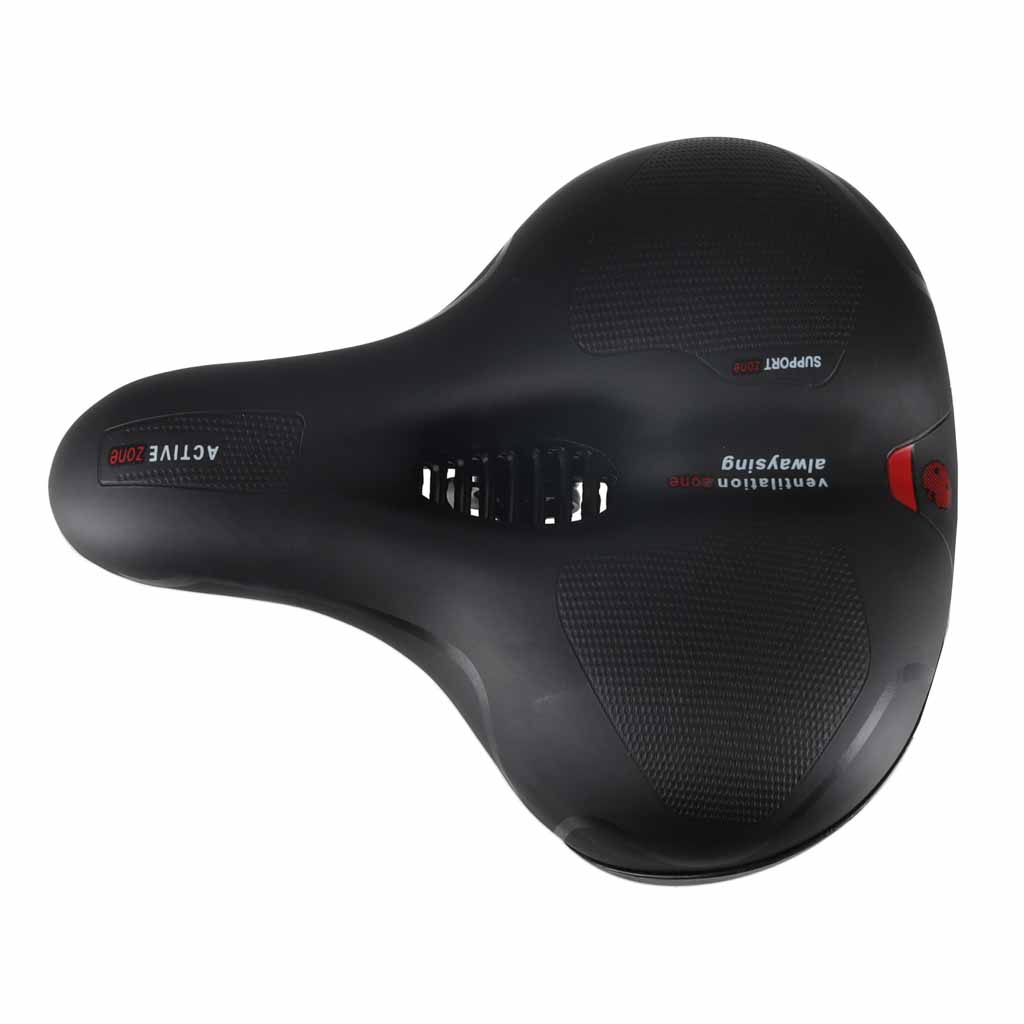 STABILNOŚĆ I WENTYLACJA PODCZAS JAZDY - Centralny kanał wentylacyjny poprawia cyrkulację powietrza, co ma duże znaczenie podczas cieplejszych dni i dłuższych przejazdów. Konstrukcja siodełka zapewnia pewne i stabilne podparcie, wspierając prawidłowe ułożenie ciała. Zastosowane sprężyny dodatkowo redukują drgania, poprawiając kontrolę nad rowerem na nierównych nawierzchniach.